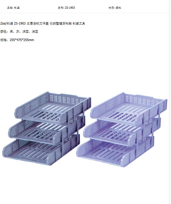 >钊盛ZS-1903 三层文件架推拉式文件框活动杆资料架文件盘收纳座