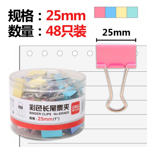 得力(deli)48只25mm彩色长尾夹票夹 4#金属燕尾夹票据夹子 办公用品 8554ES