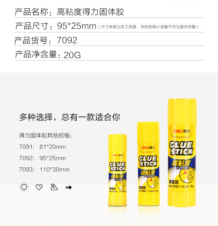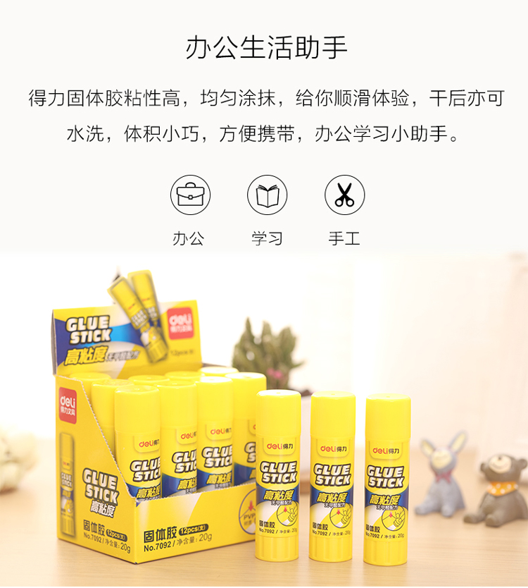 >得力 7092 20g高粘度PVP固体胶水