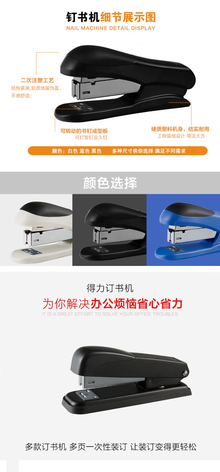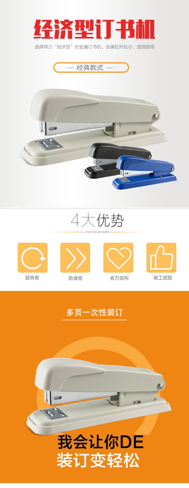 >得力 0309 经济型订书机 轻便型 金属材质加厚订书机