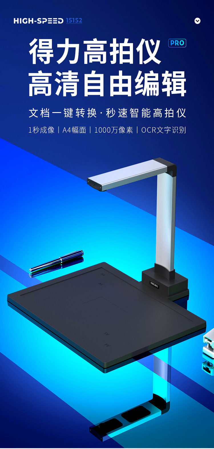 得力 15152 高拍仪 1000万高清像素 加固底A4幅面 远程教学网课 文档试卷资料连续扫描 照片身份证扫描仪