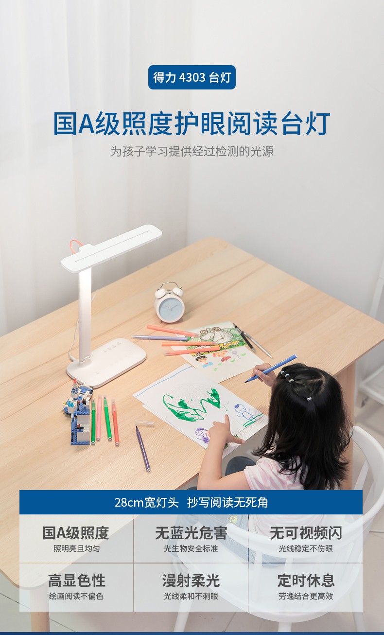 得力 4303 企业定制4303LED台灯新国标A级照度触控台灯 减蓝光3色温自动关机办公学习台灯