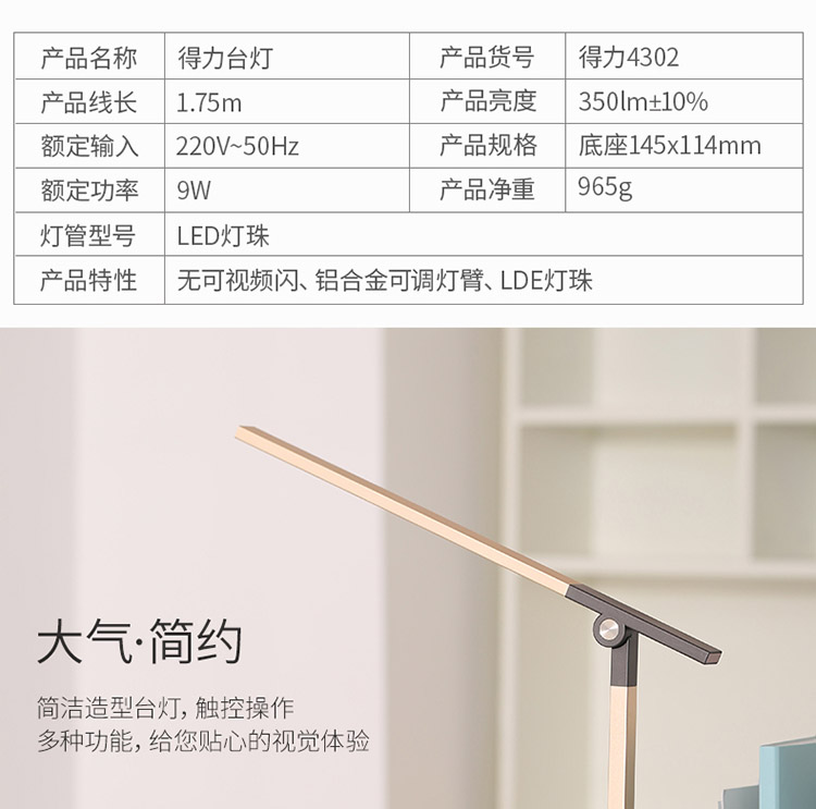 得力 4304 企业定制4304LED台灯新国标AA级减蓝光护眼台灯工作阅读儿童学生学习台灯