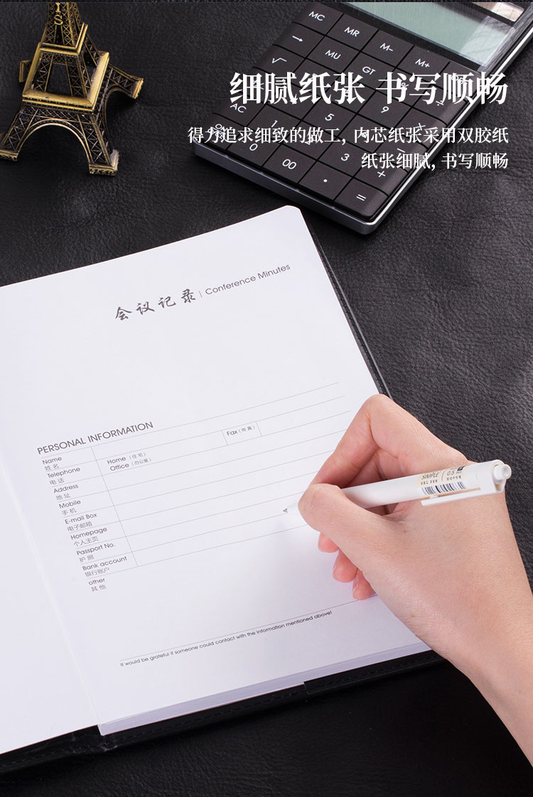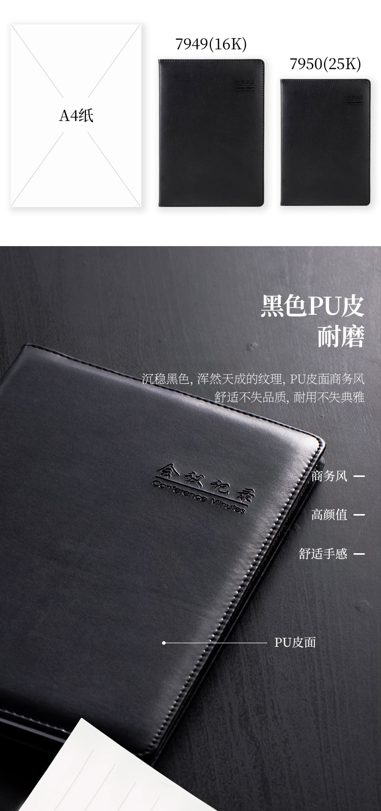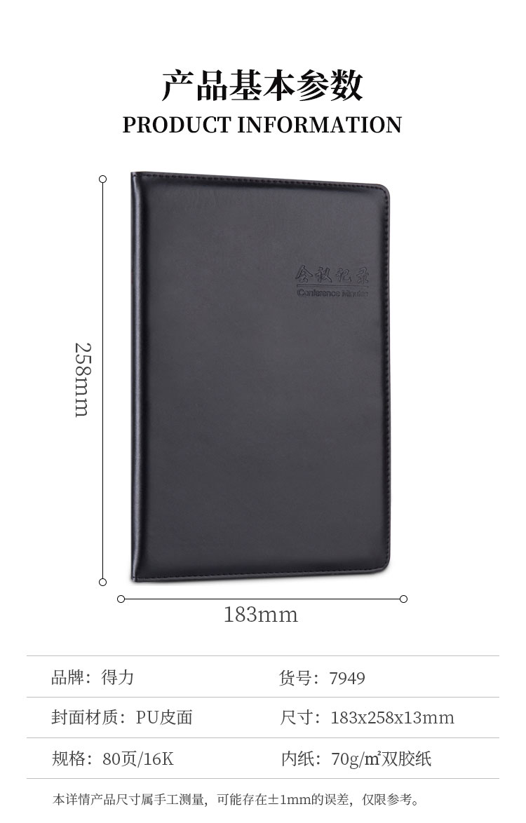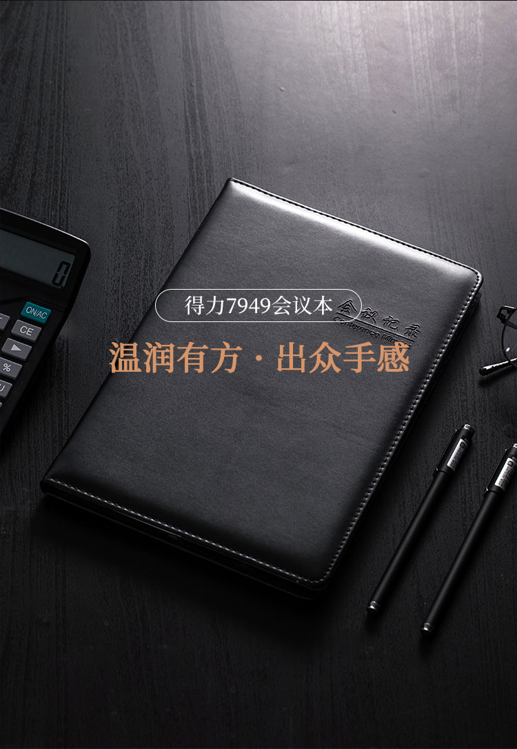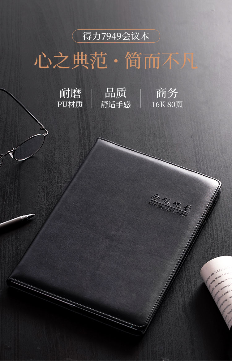 >得力 7949 16K80张大号基础款会议记录本皮面本 办公记事本笔记本子