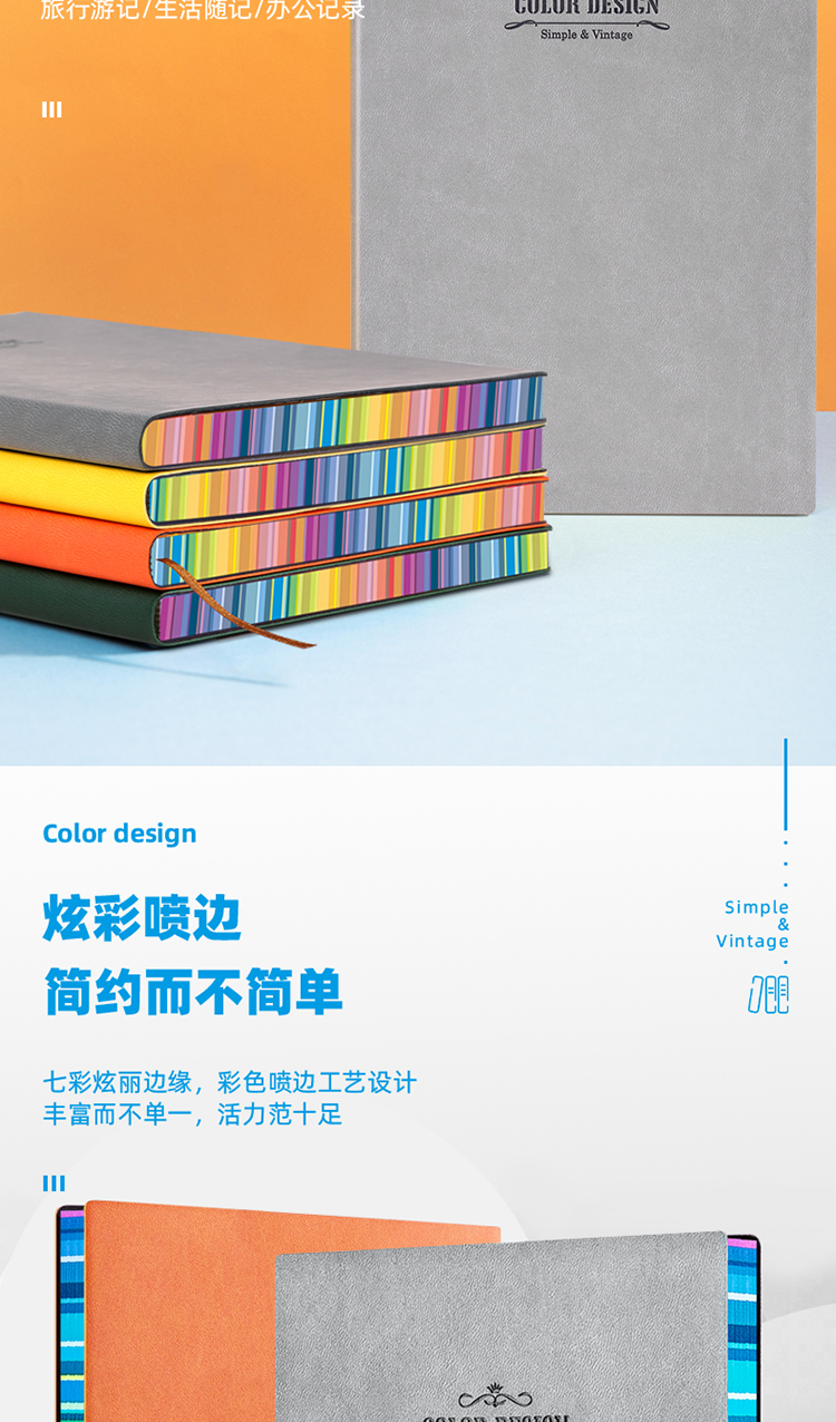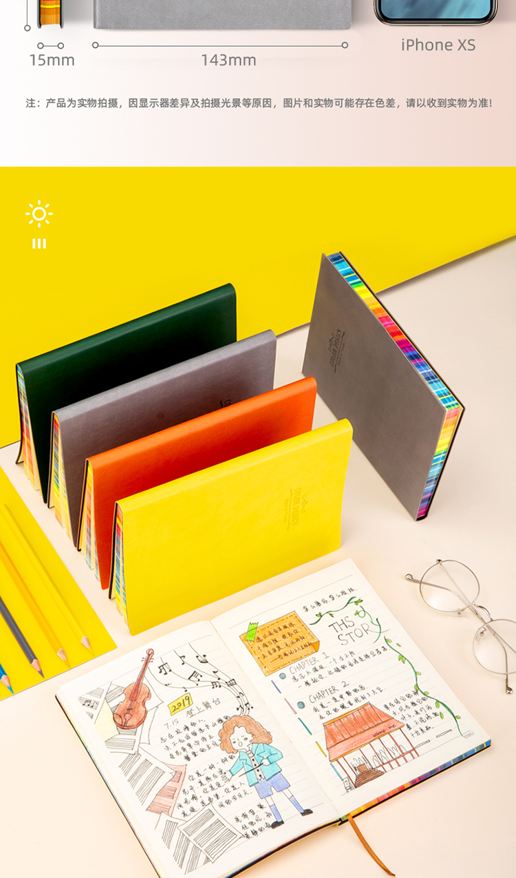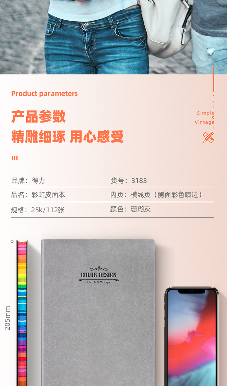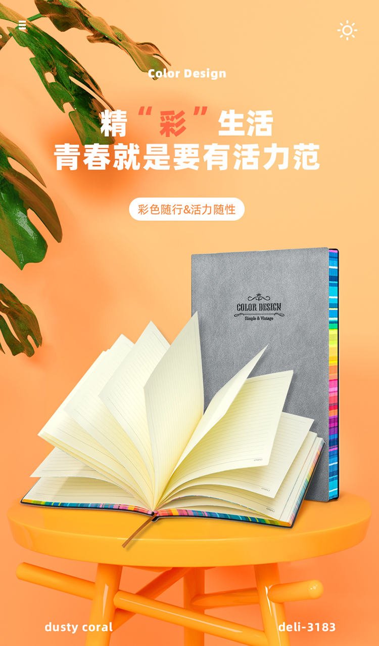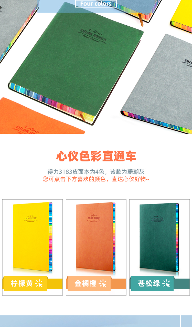 得力 3183 25K112张活力系列彩虹边缘软皮面本 记事本日记本笔记本子文具 单本装