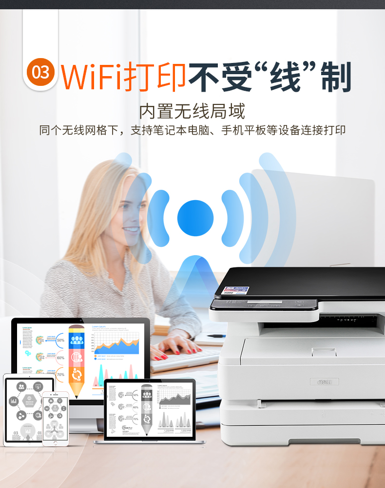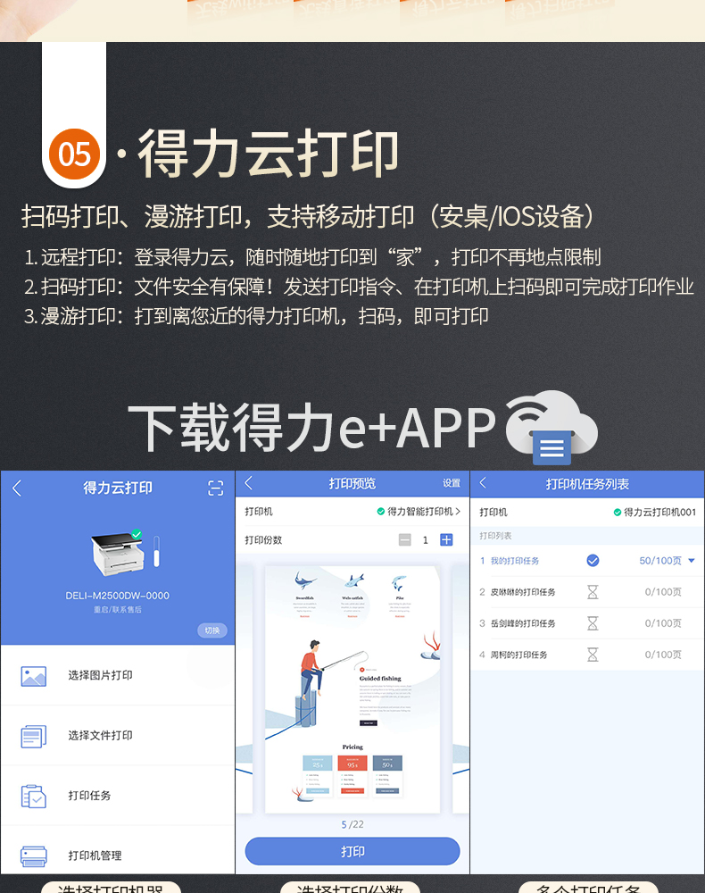 >得力 M2500DW 云打印无线wifi黑白激光打印机 家用办公大容量打印复印扫描三合一打印一体机