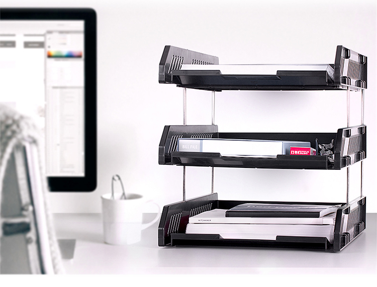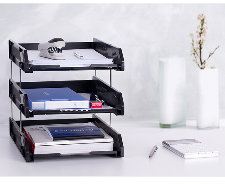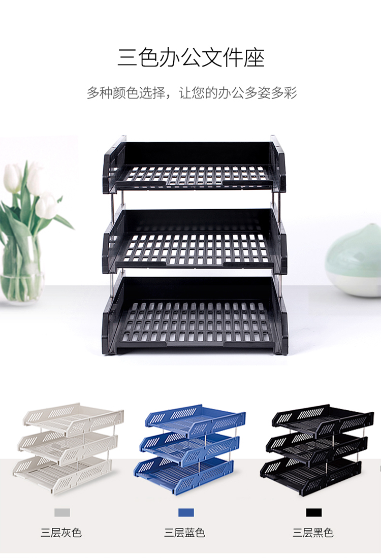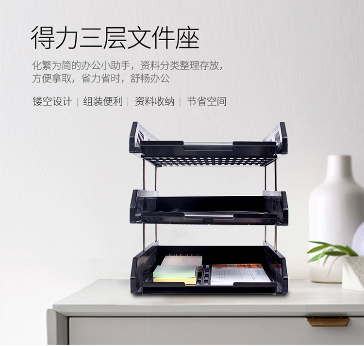得力(deli)三层镂空收纳文件座 自由拆卸组装三层文件盘/文件框 牢固耐用 办公用品 黑色9209