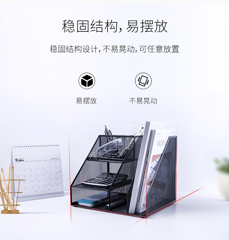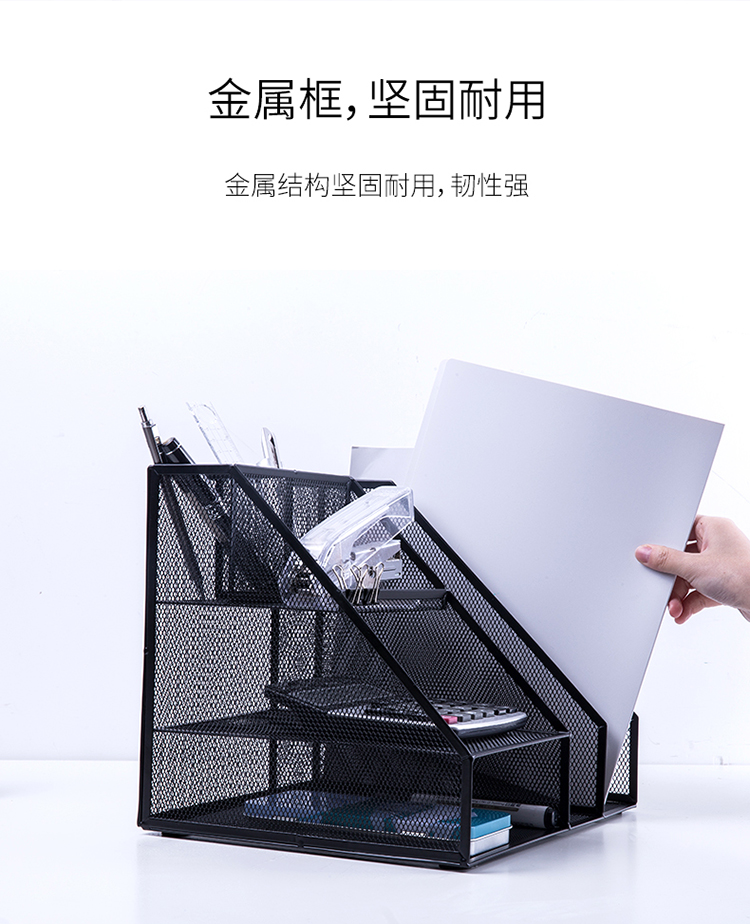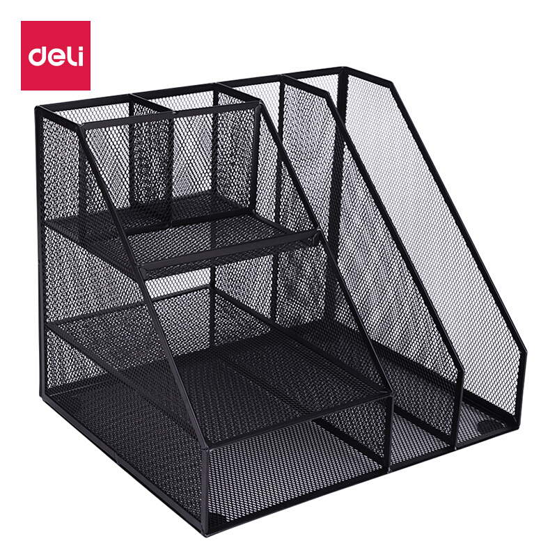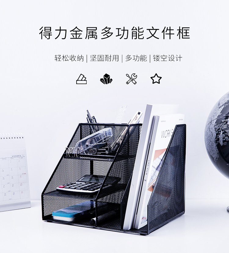 得力(deli)多功能金属网材组合式文件框 分层收纳文件栏/文件筐/资料架 办公用品 黑色79075