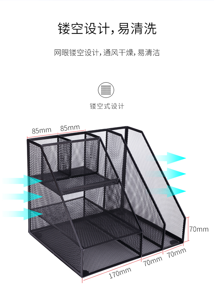 >得力(deli)多功能金属网材组合式文件框 分层收纳文件栏/文件筐/资料架 办公用品 黑色79075