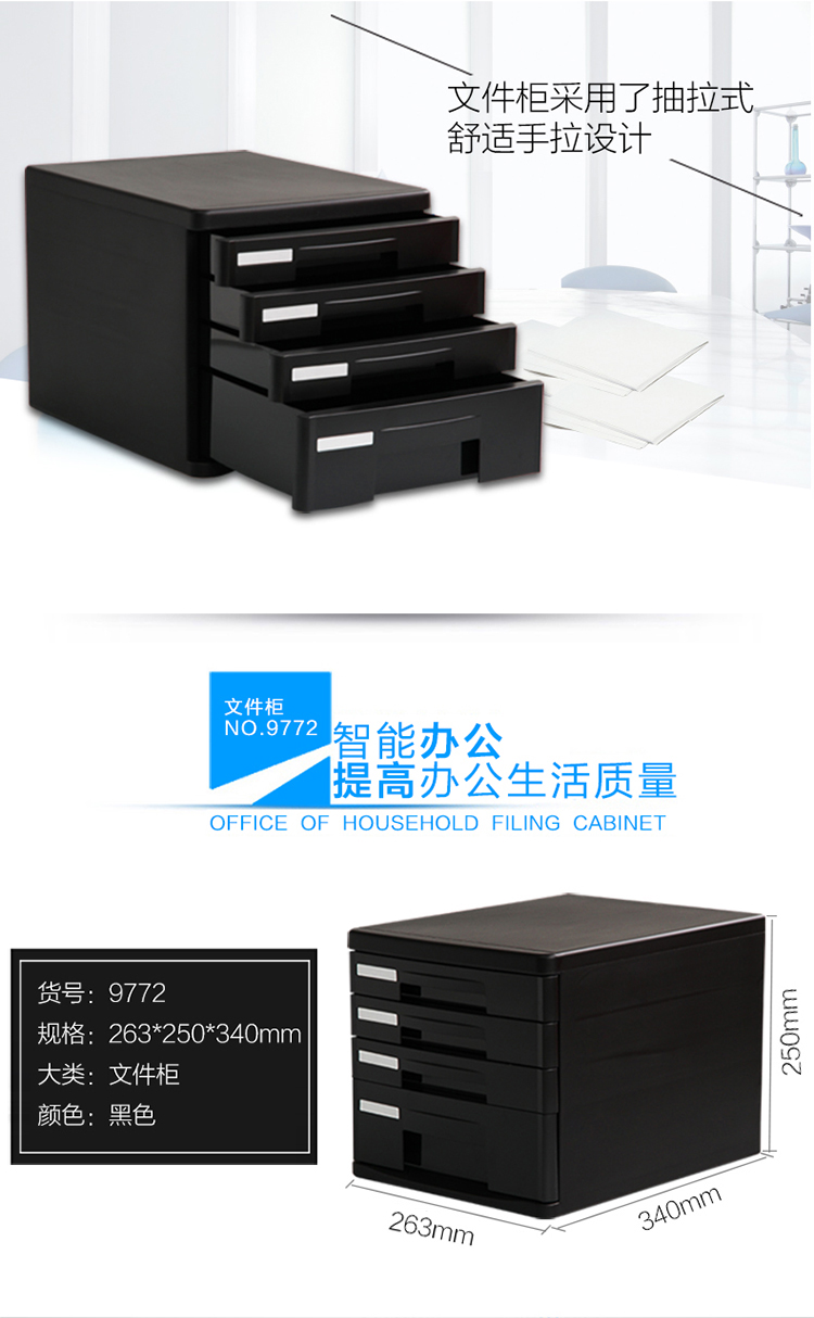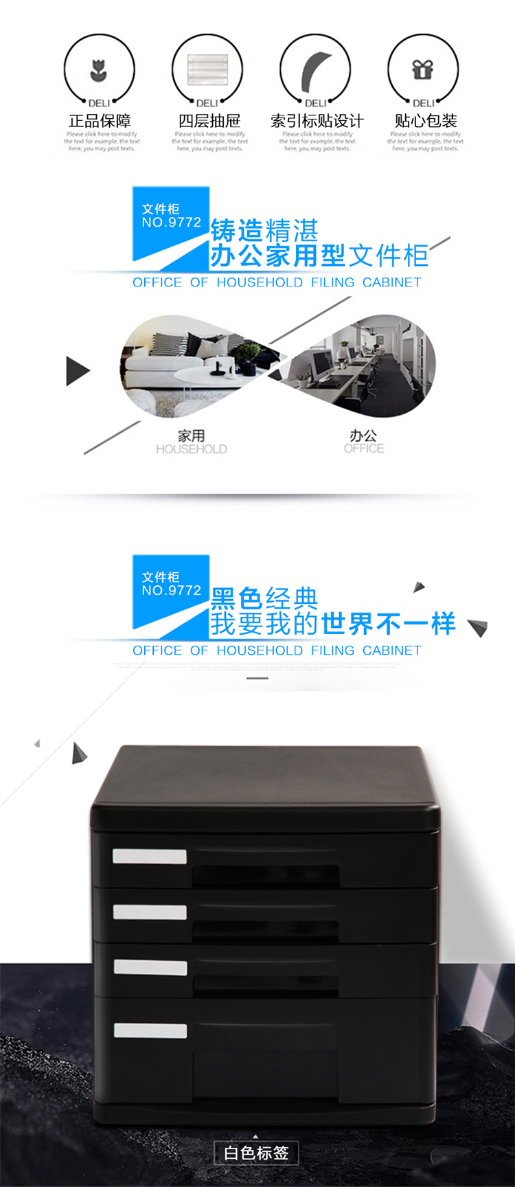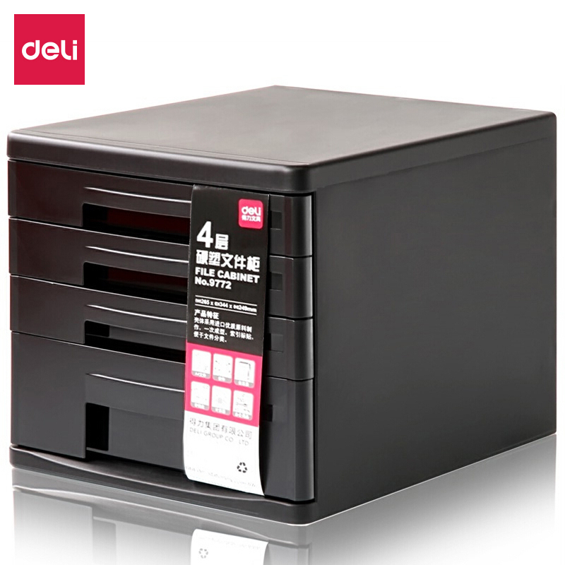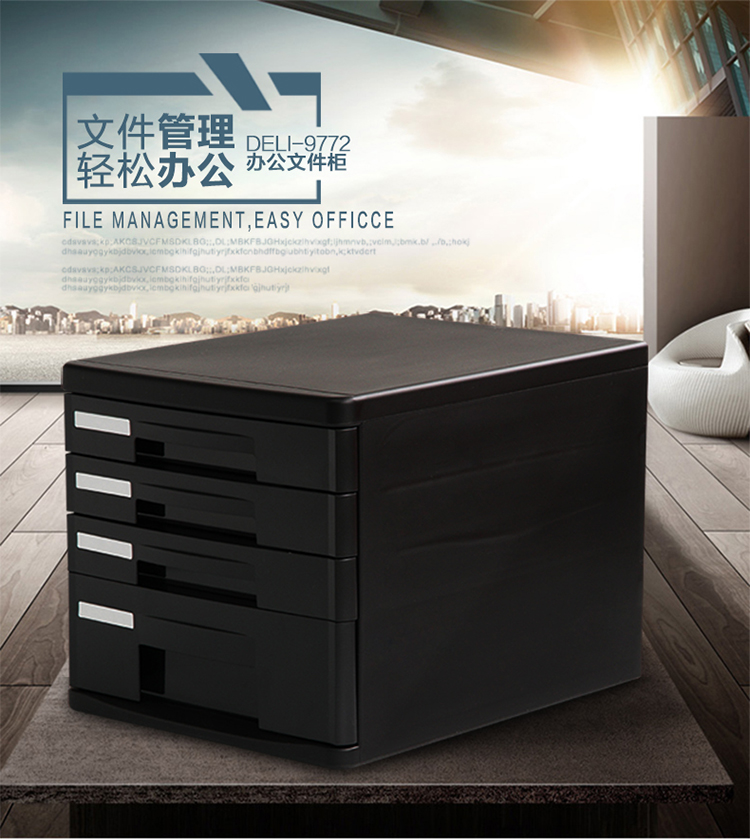 >得力(deli)4层桌面文件柜 A4拉手资料收纳柜 带索引标签 办公用品 黑色9772