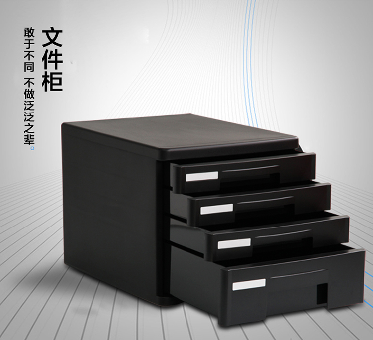 得力(deli)4层桌面文件柜 A4拉手资料收纳柜 带索引标签 办公用品 黑色9772