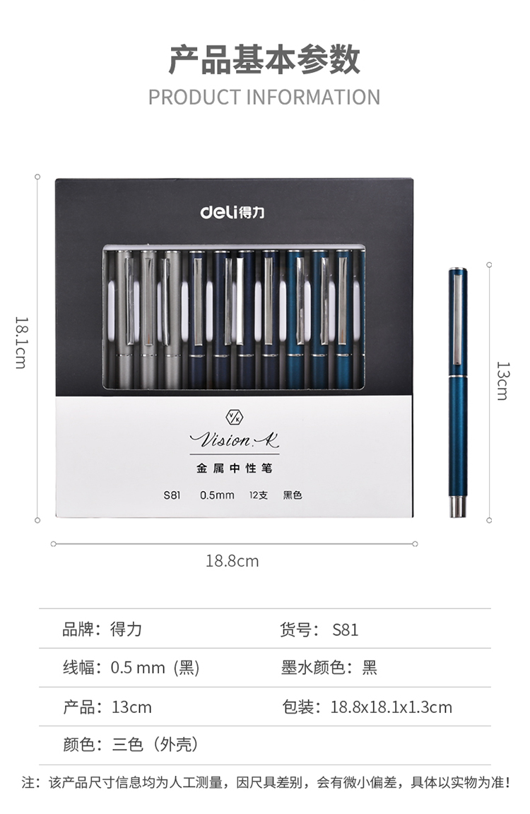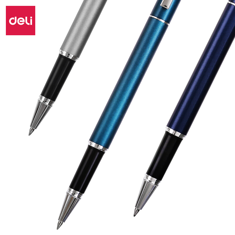 >得力(deli)金属中性笔签字笔水笔 子弹头0.5mm黑色12支盒