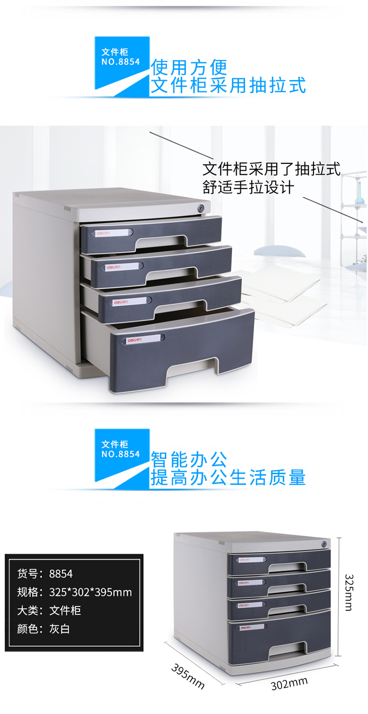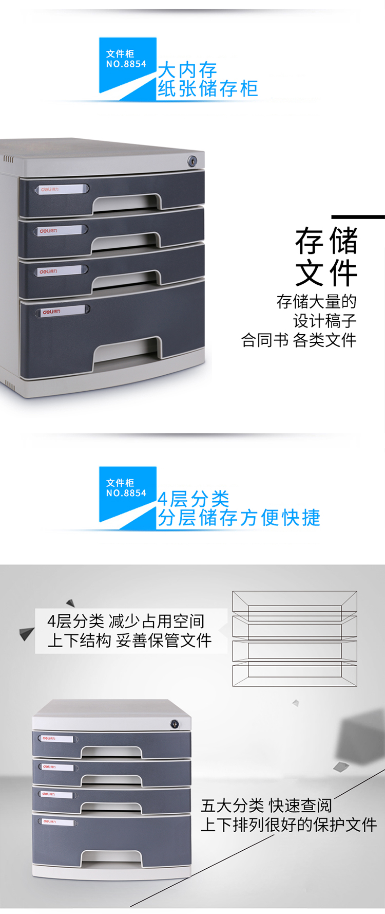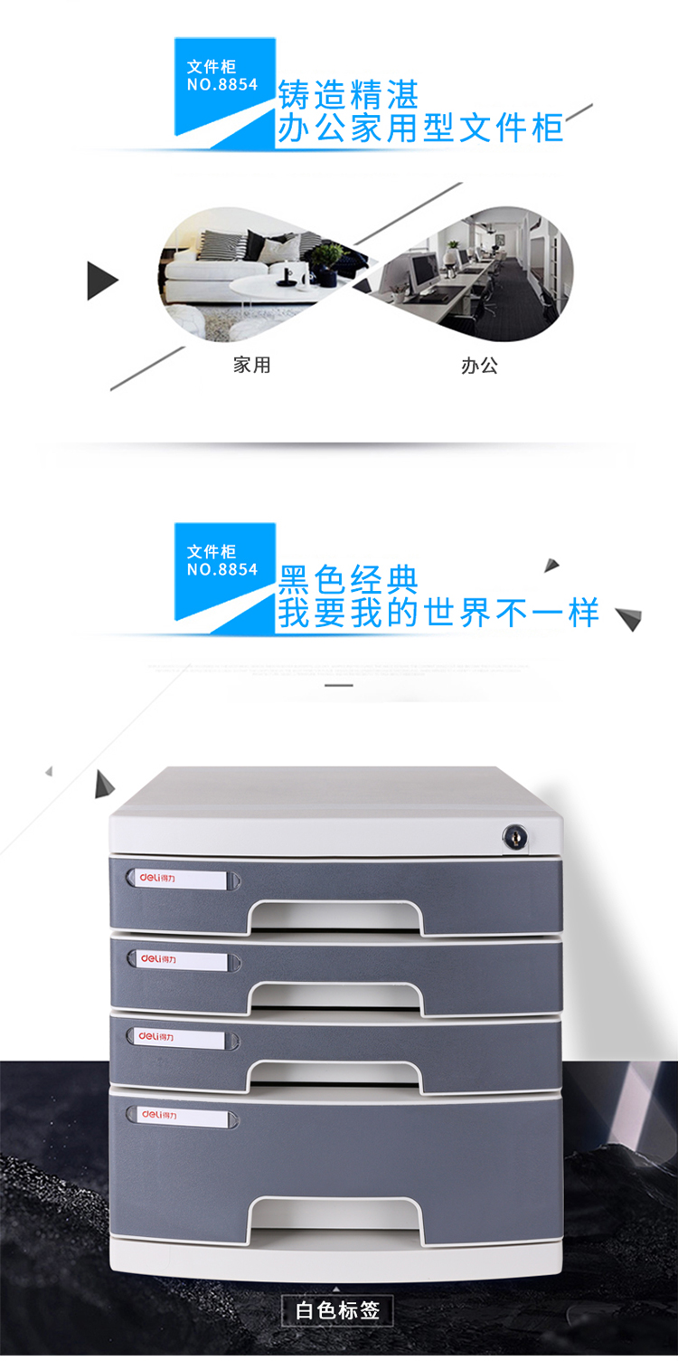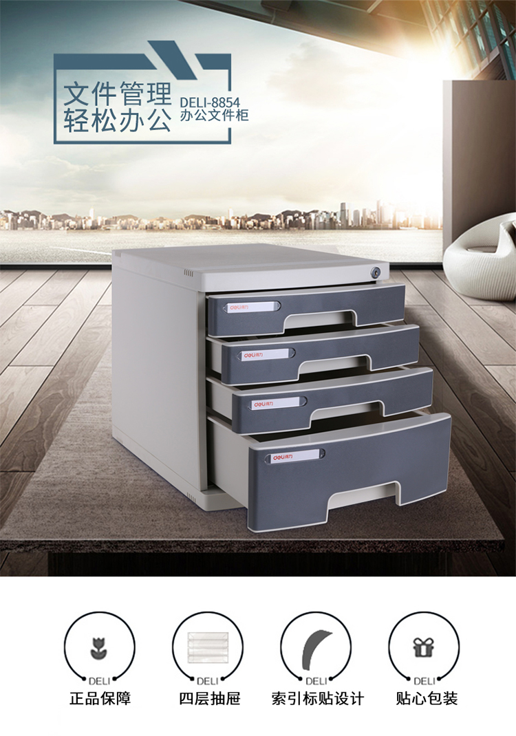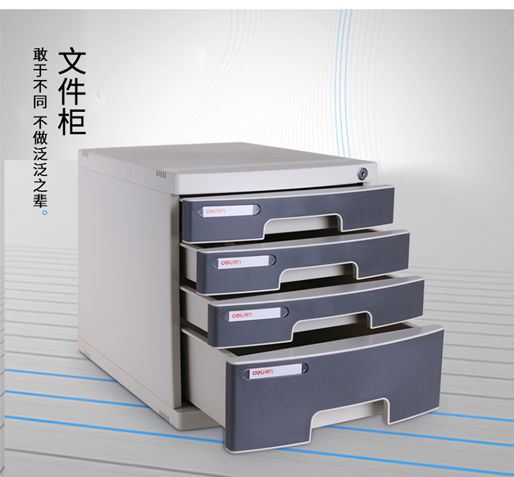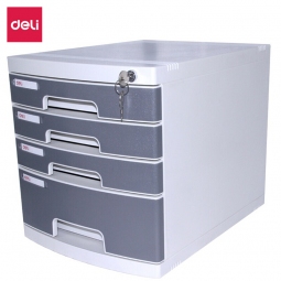 >得力(deli)4层带锁手拉桌面文件柜 带索引标签抽屉资料收纳柜 办公用品 灰色8854