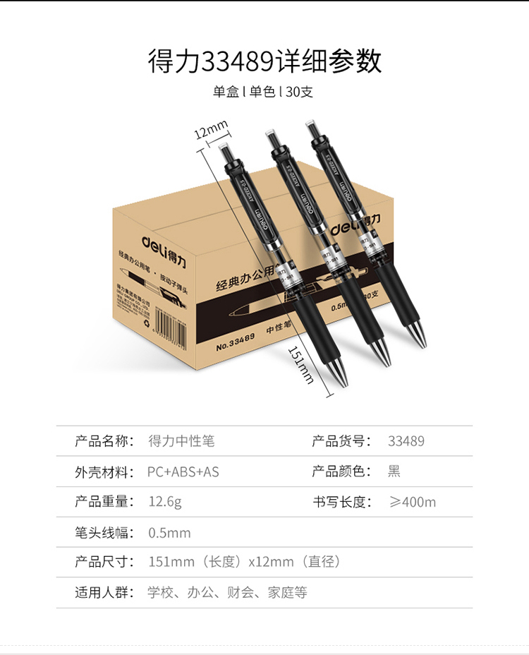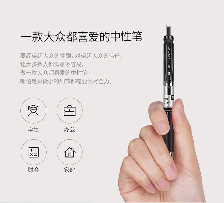 >得力(deli)30支S01按动中性笔签字笔 0.5mm子弹头 办公用品