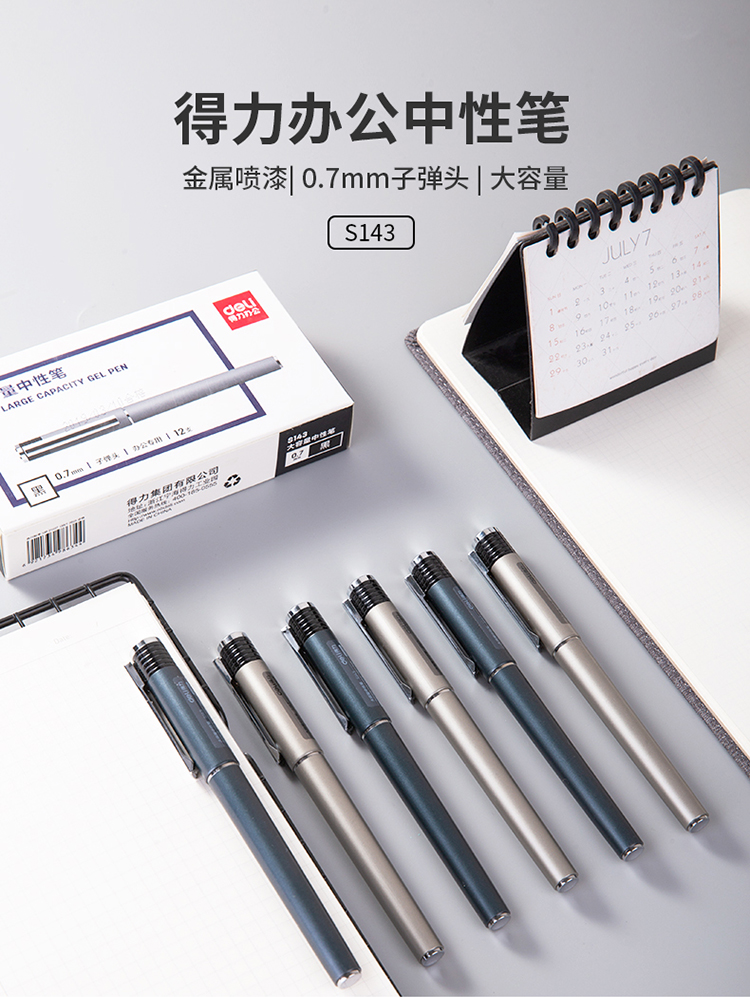 >得力(deli)12支0.7mm办公中性笔签字笔 子弹头黑色DL-S143