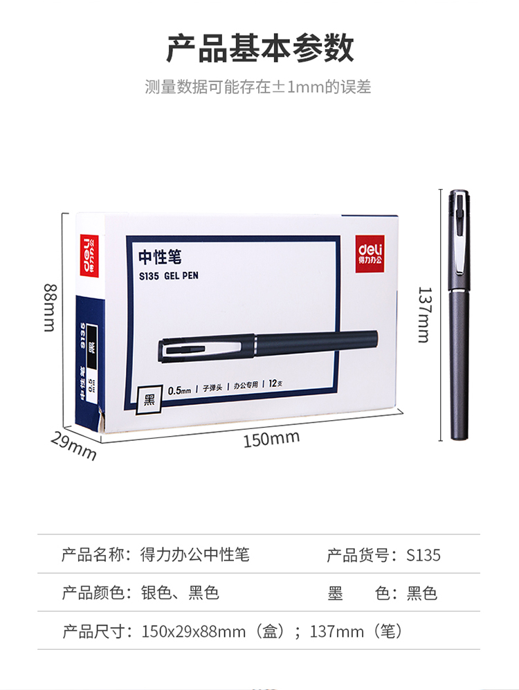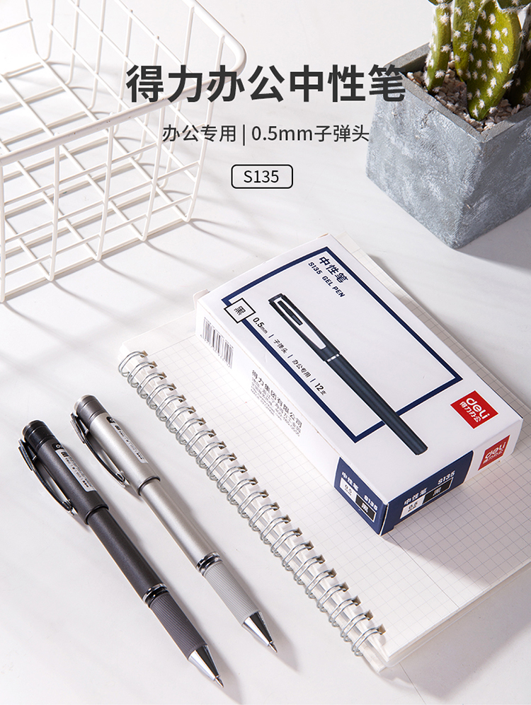 >得力(deli)12支0.5mm办公中性笔签字笔 子弹头黑色SX-S135