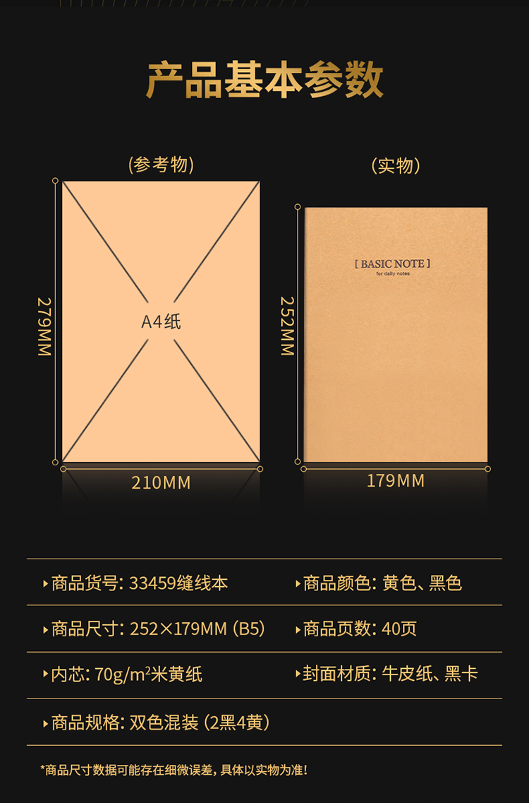 >得力(deli)6本B540张牛皮纸缝线软抄本 办公记事本文具笔记本子33459-6