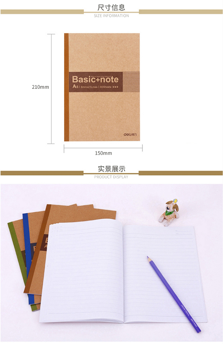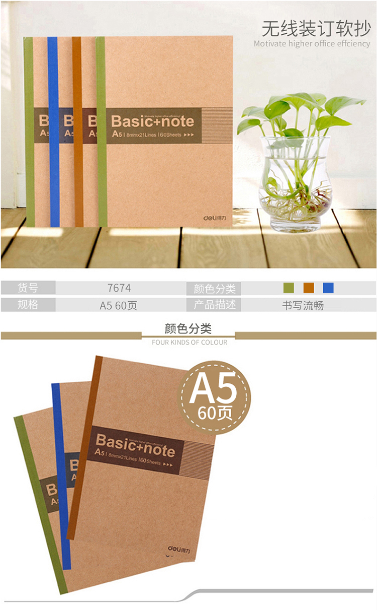 得力(deli)10本A5/60张无线装订软抄本记事本 工作笔记本子文具办公用品 7674
