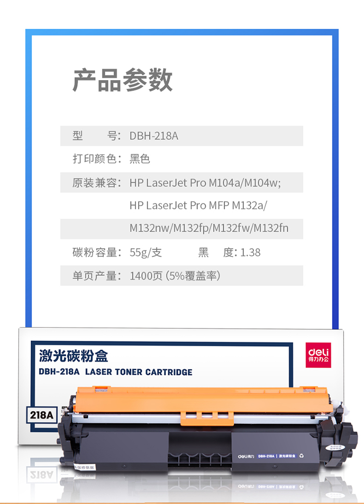 >得力(deli) CF218A硒鼓 18A大容量硒鼓碳粉盒带芯片 适用惠普HP 打印机M104a M104w M132a M132nwfnfpfw