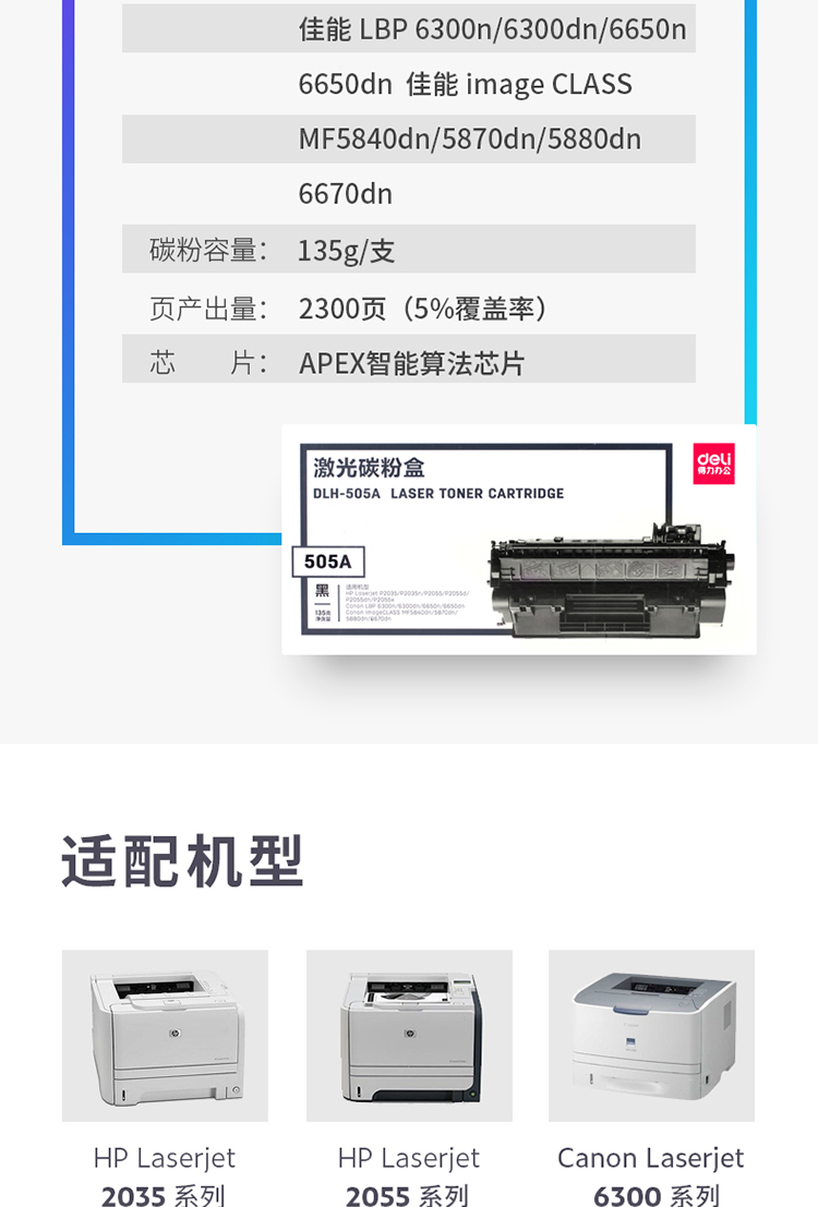 >得力(deli)DLH-505A 黑色激光打印机硒鼓 (适用惠普HP P2035P2035nP2055P2055ddnx)