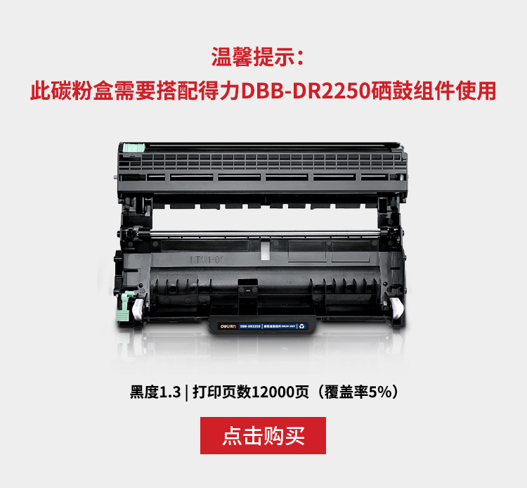 >得力(deli)DBB-TN2225 大容量硒鼓碳粉盒(适用兄弟Brother 22402250DN7360 联想LJ2400M7450F) 黑色
