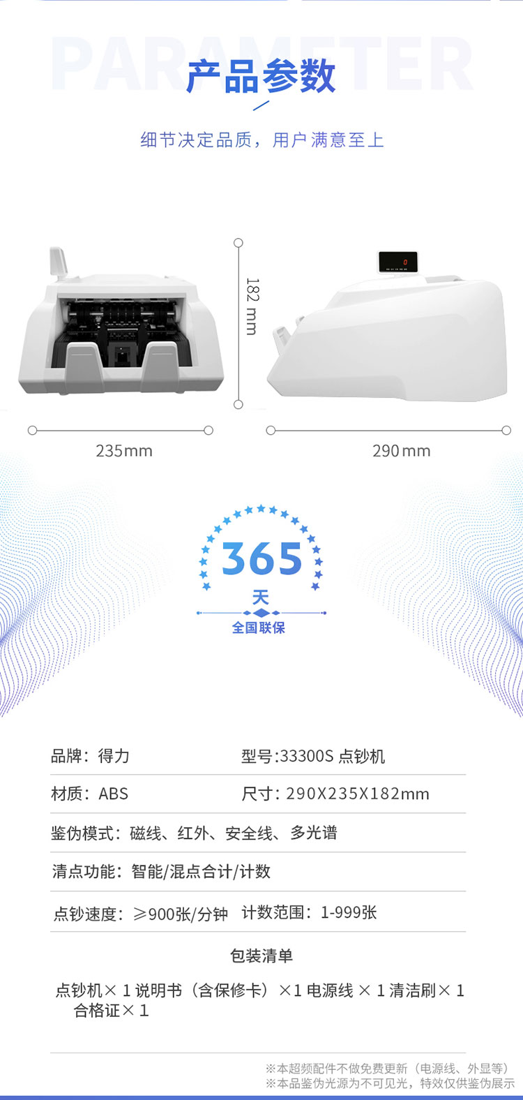 >得力(deli)2019新版人民币点钞机 智能语音小型数钱机商用智能家用验钞机33300S