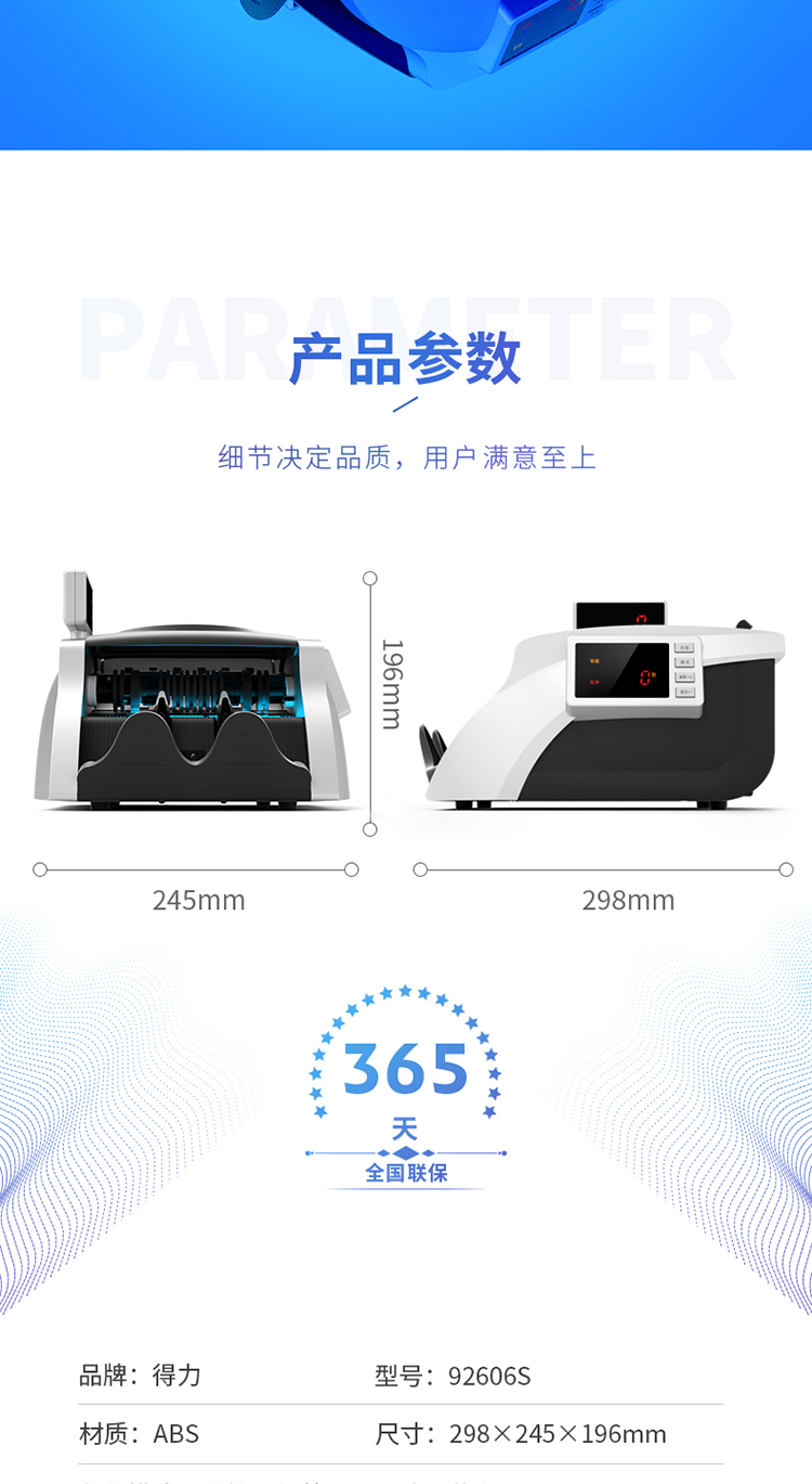 >得力(deli)2019年新版人民币点钞机验钞机升级款 银行专用 双屏语音商用家用点钞机数钱机 92606S