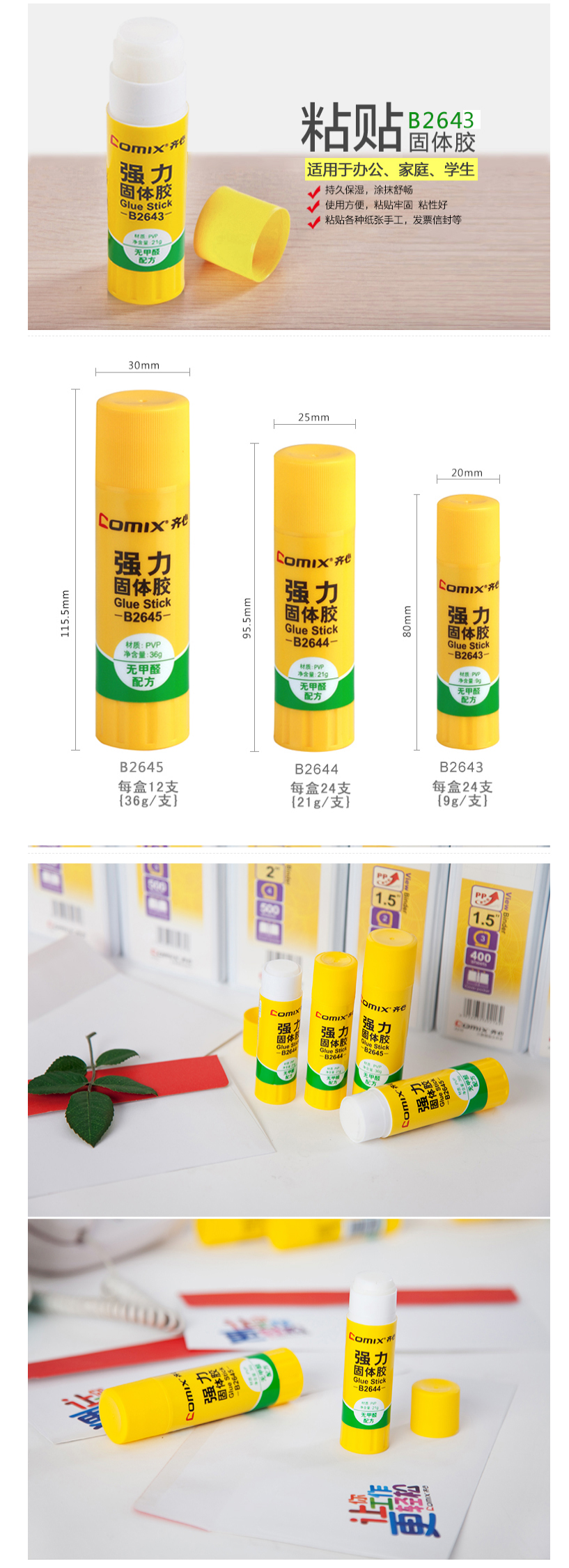 >齐心(COMIX) 固体胶大号固体胶棒 固体胶水学生用手工文具办公批发 5支装价 B2643 9g 5支装价