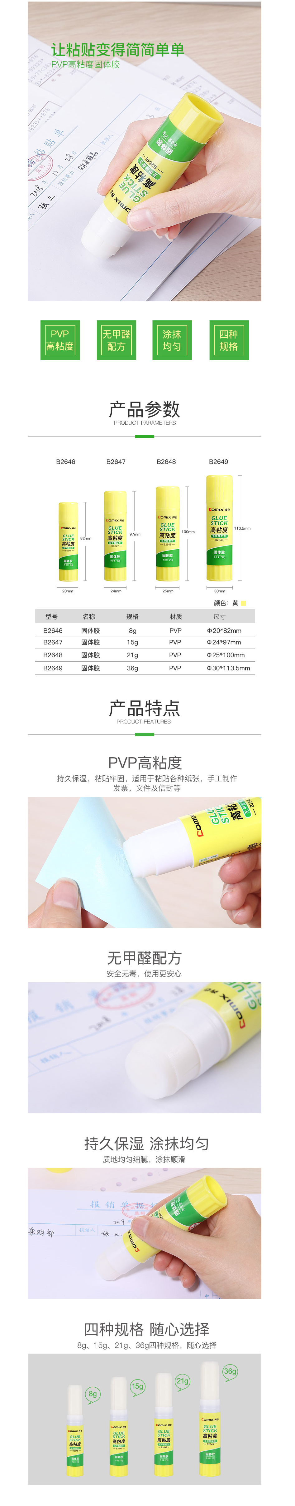 >齐心(Comix)8g高粘度pvp固体胶棒 无甲醛配方办公用品 12只/盒B2646