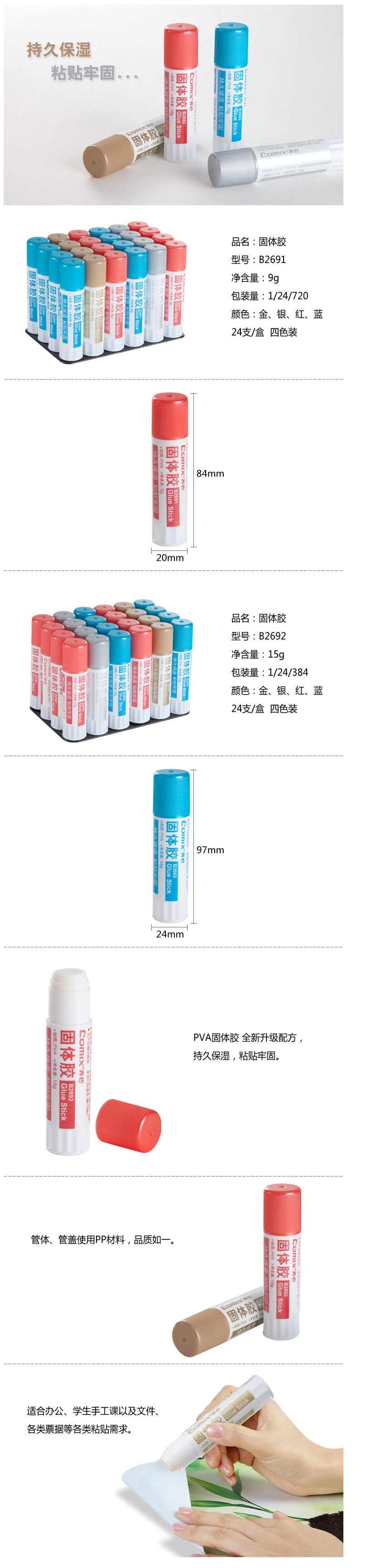 >齐心(COMIX) PVA高粘性固体胶棒 办公文具 B2691 24支装 9g
