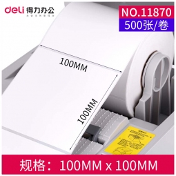 >得力(deli) 三防热敏标签纸 电子面单不干胶打印纸 条码纸 热敏纸 100100mm 500张 11870