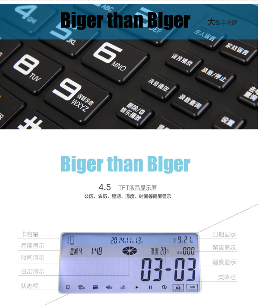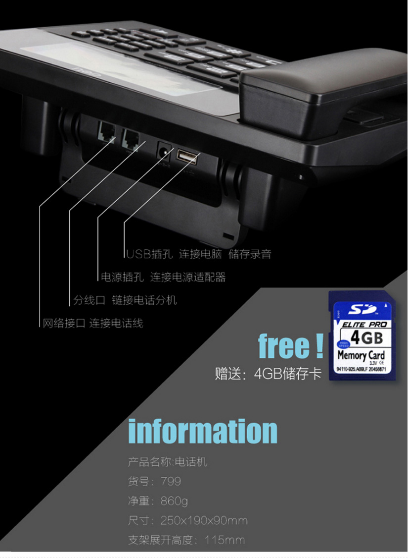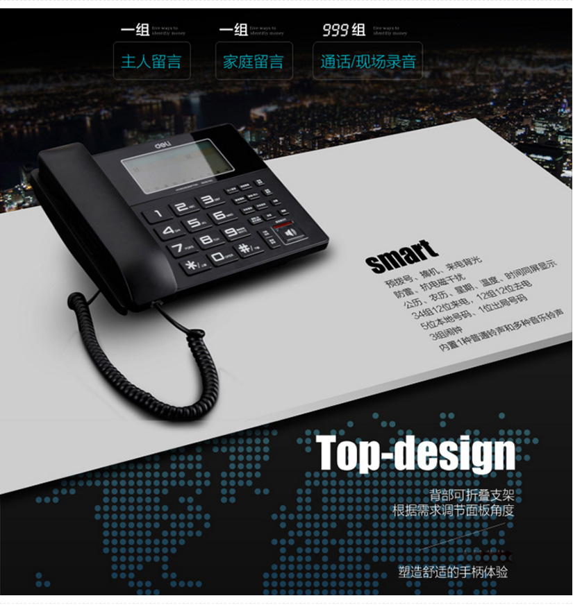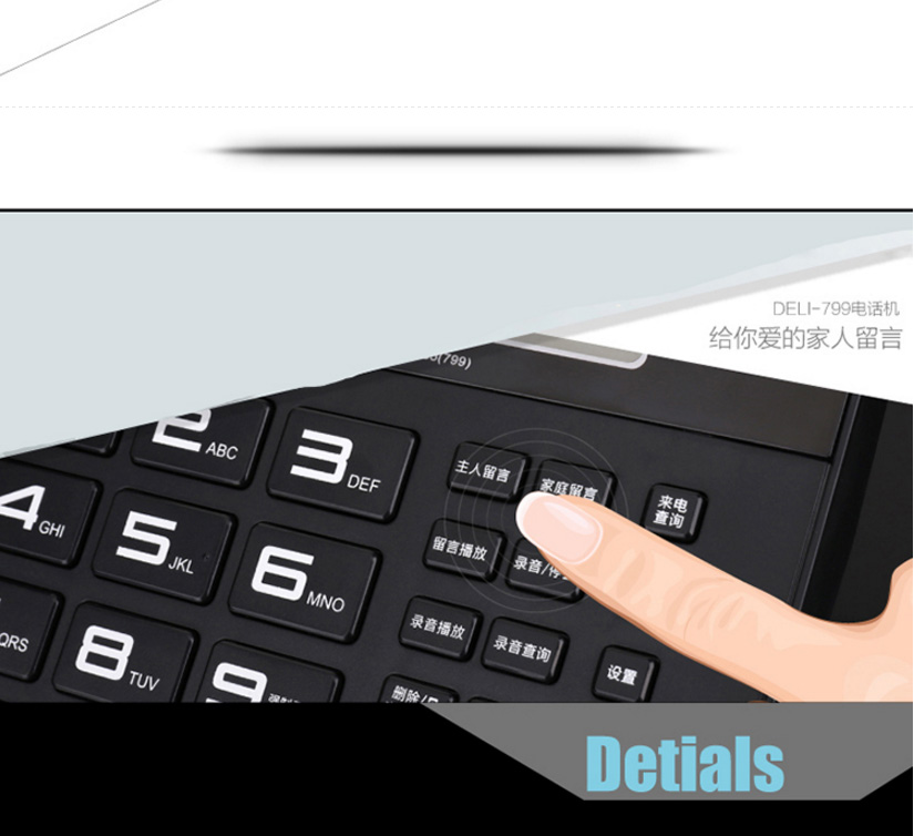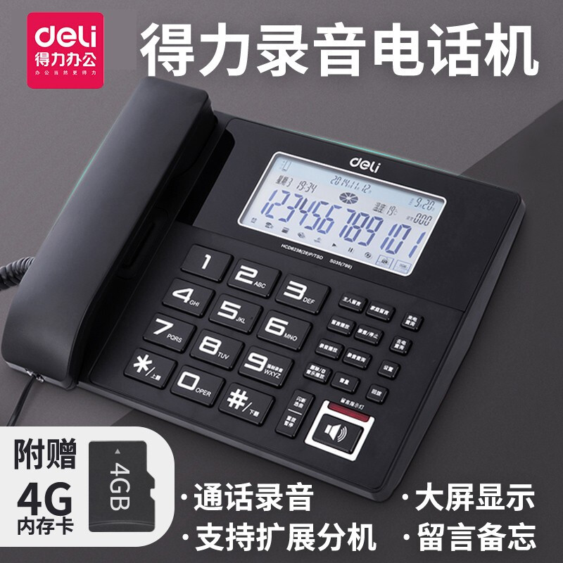 得力 (deli)799数码录音电话机/座机 大屏显示 防雷(黑色)