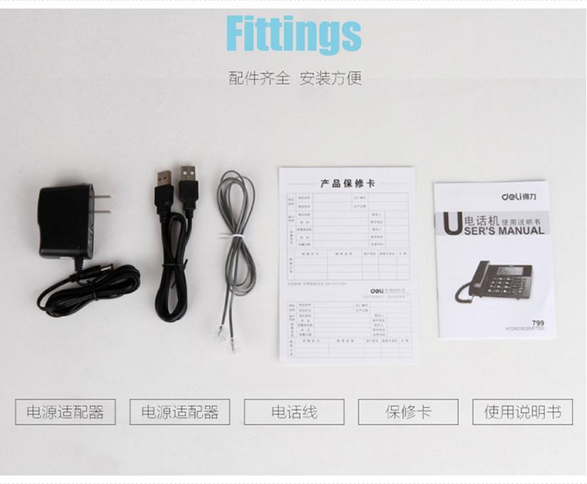 >得力 (deli)799数码录音电话机/座机 大屏显示 防雷(黑色)