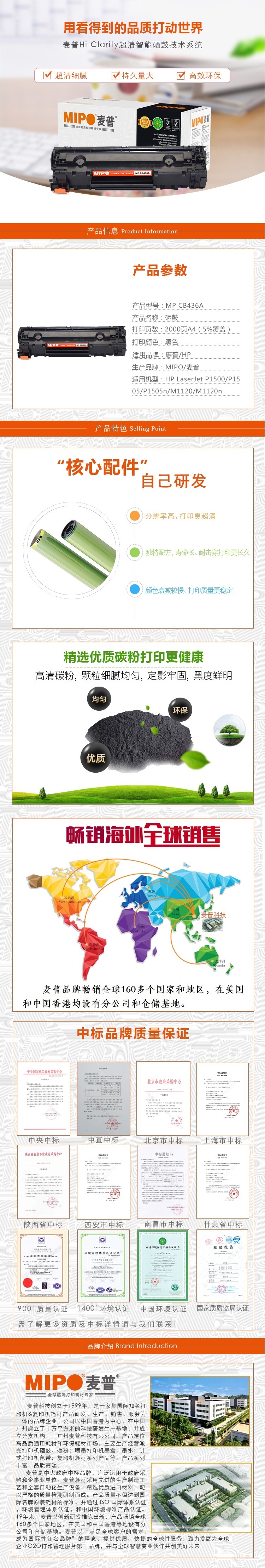 >麦普硒鼓MP CB436A适用HP LaserJet P1500/P1505/P1505n/P1120/P1120n