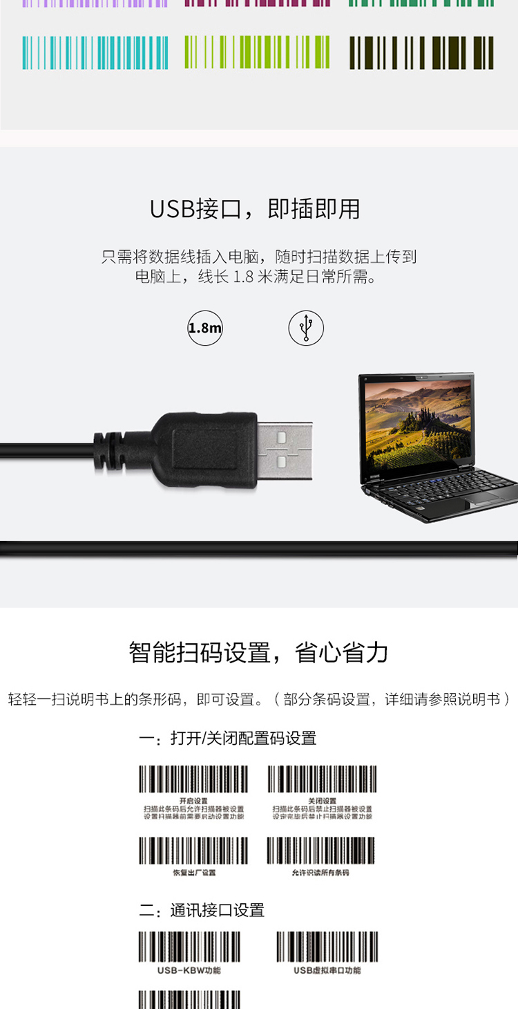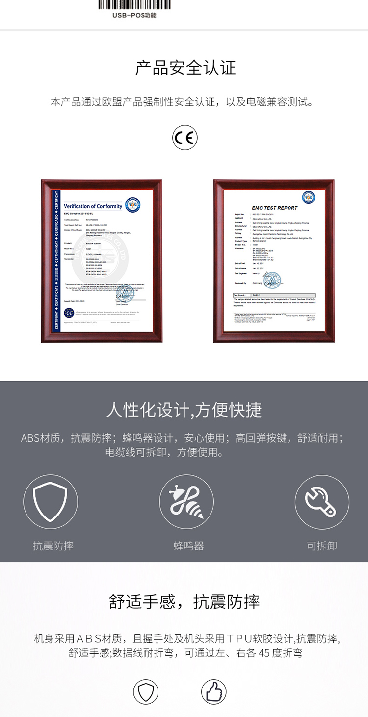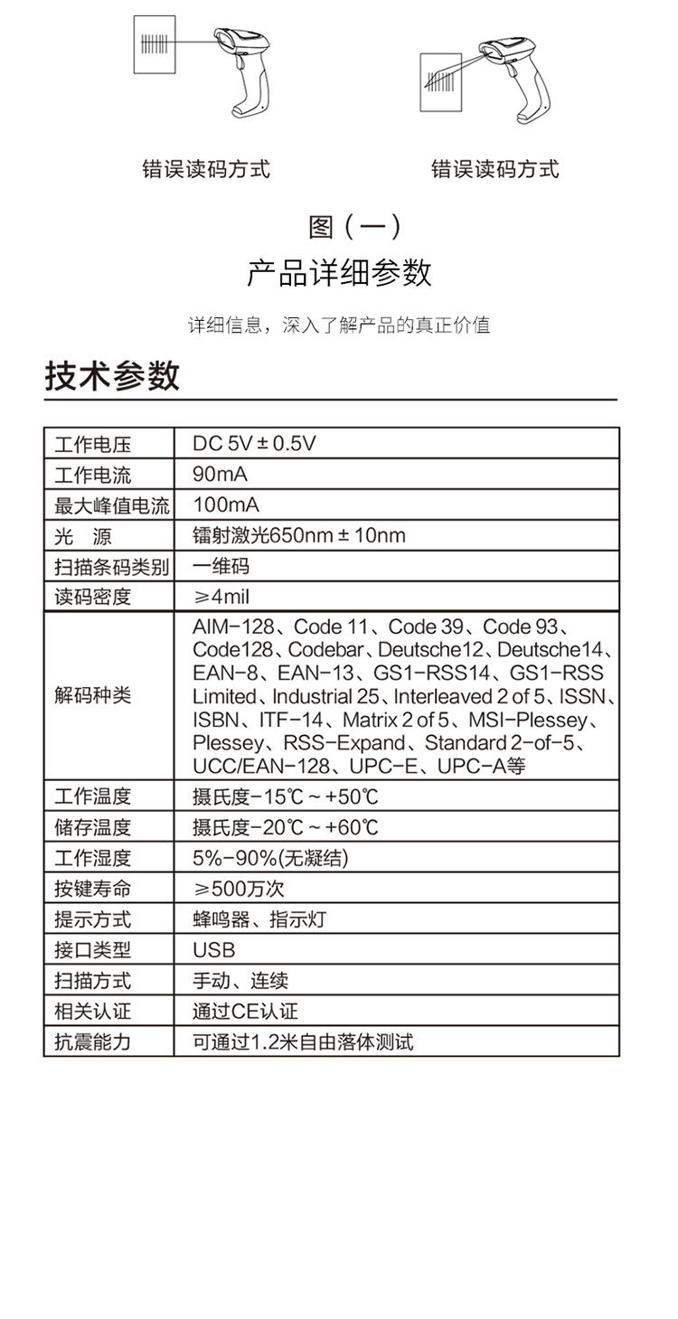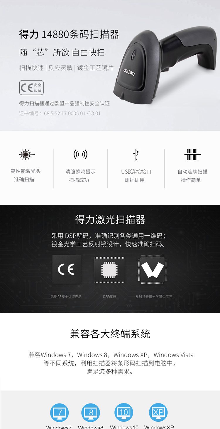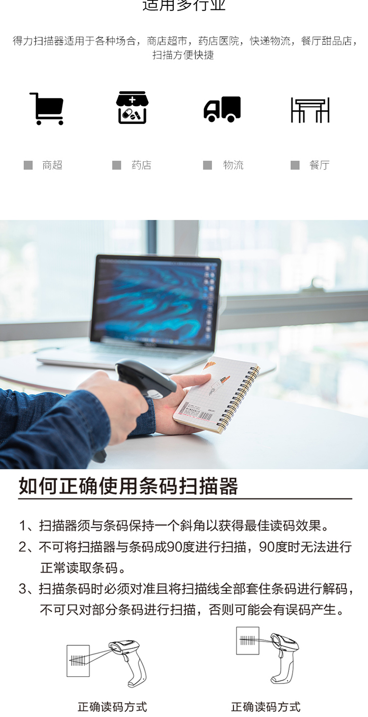 >得力(deli)一维码扫描枪扫码枪