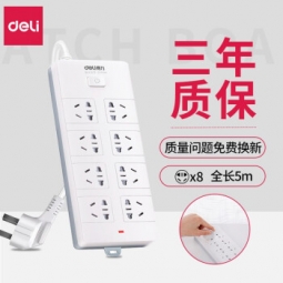 得力18170-05电源插座8组合插孔5米全长电源线插座电源板插板