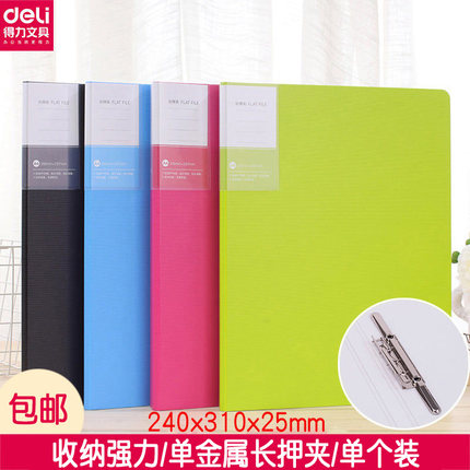 >得力a4文件夹5048加厚彩色档案收纳强力单夹长押夹