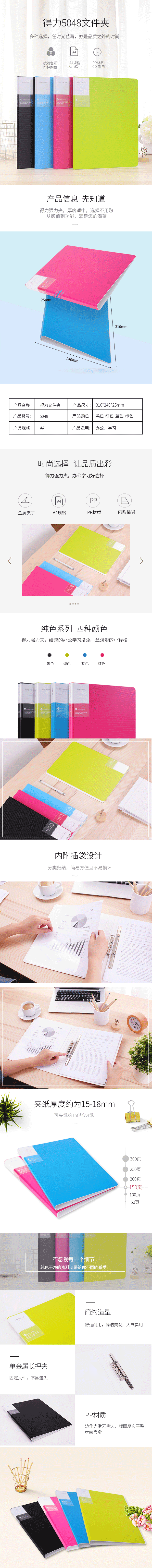得力a4文件夹5048加厚彩色档案收纳强力单夹长押夹