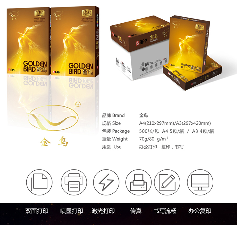 >金鸟(APP)复印纸 A4 70g 500张/包 5包/箱