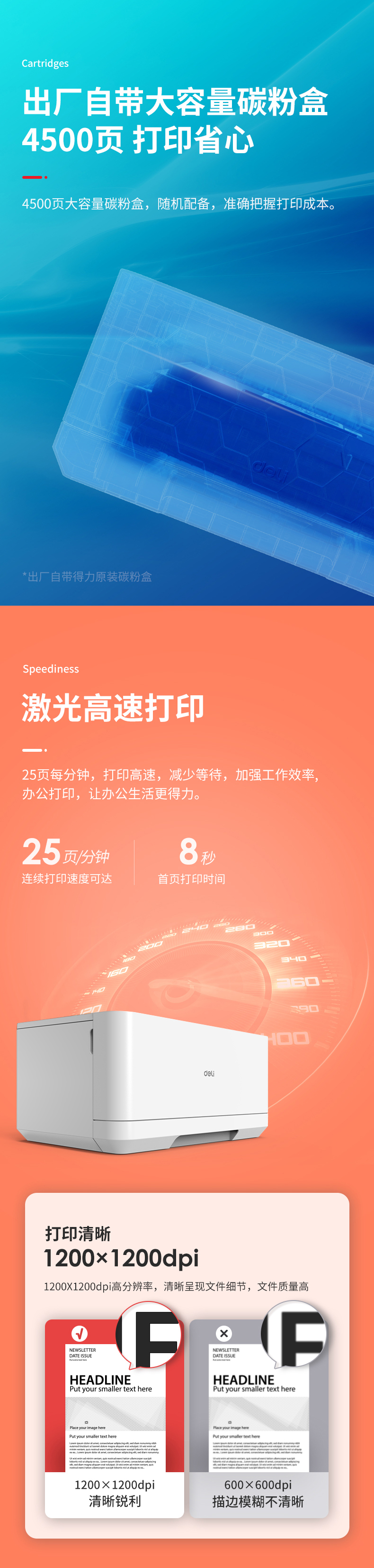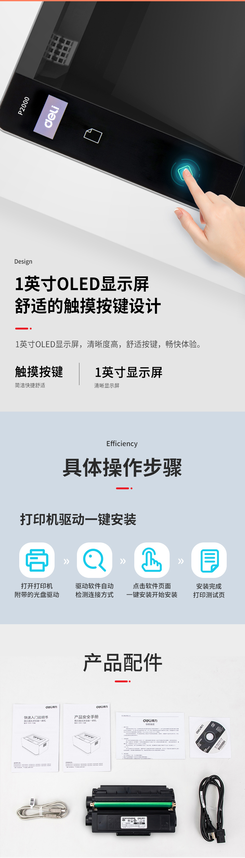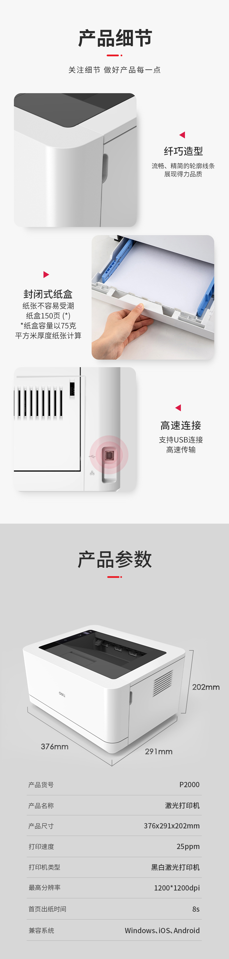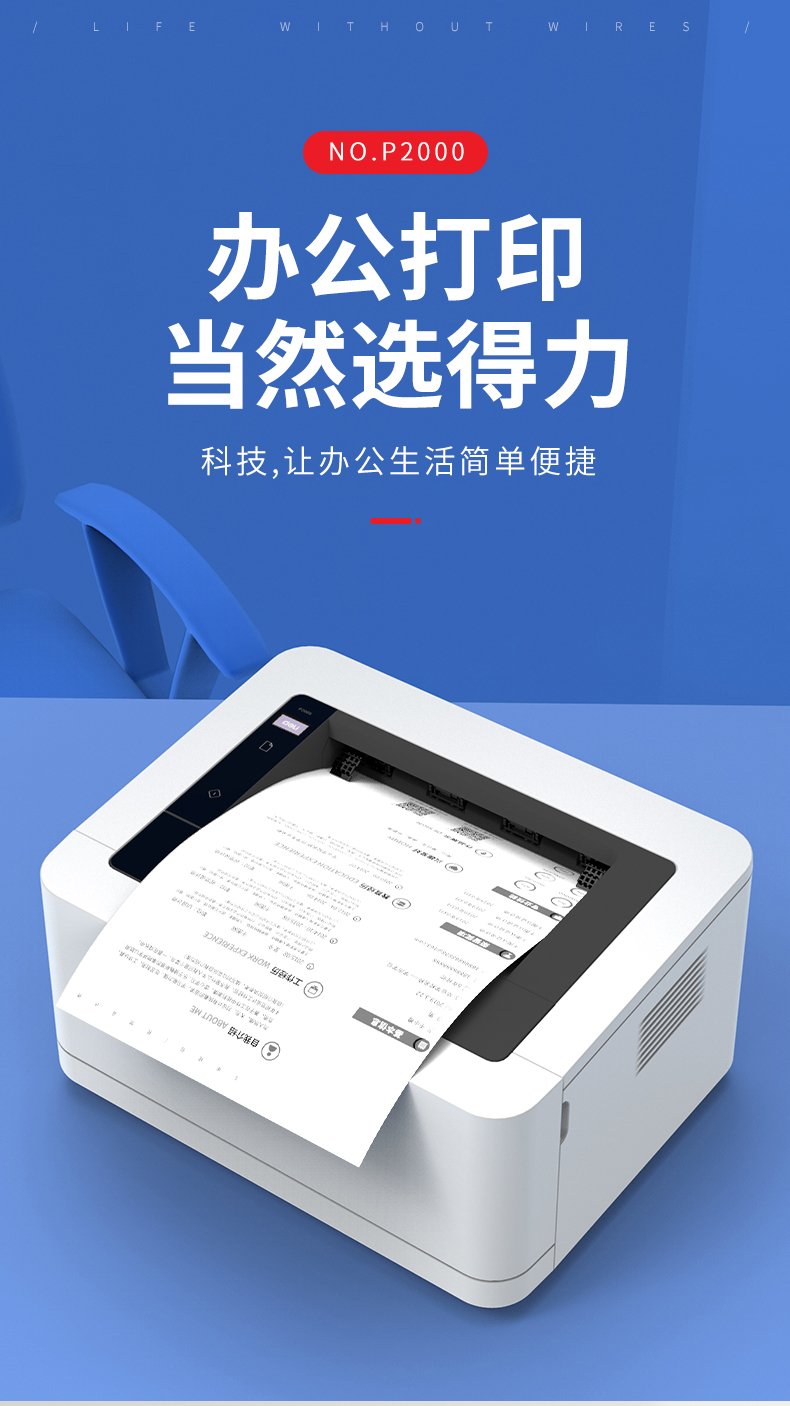 得力P2000激光打印机家用小型黑白激光打印机无线