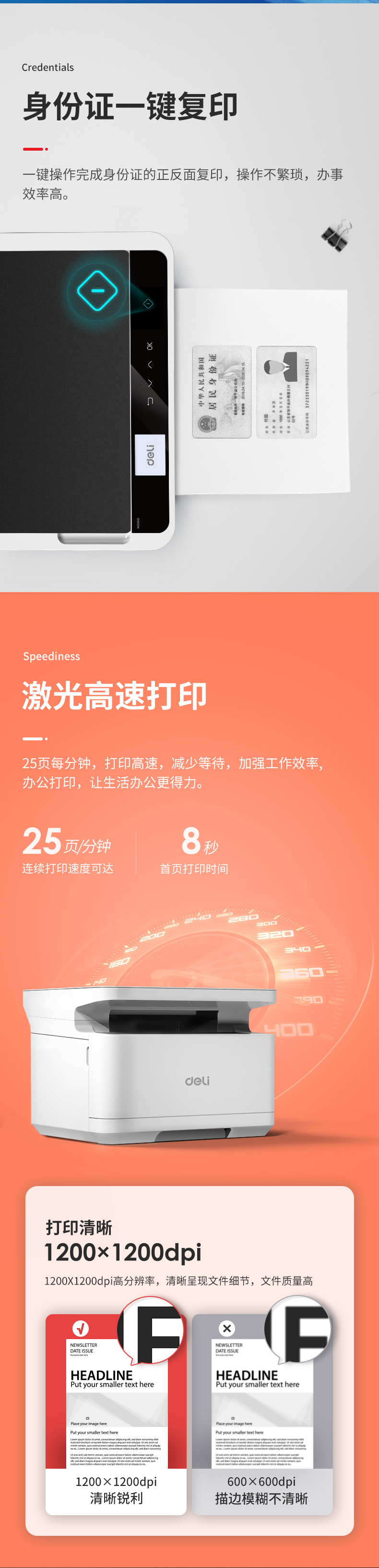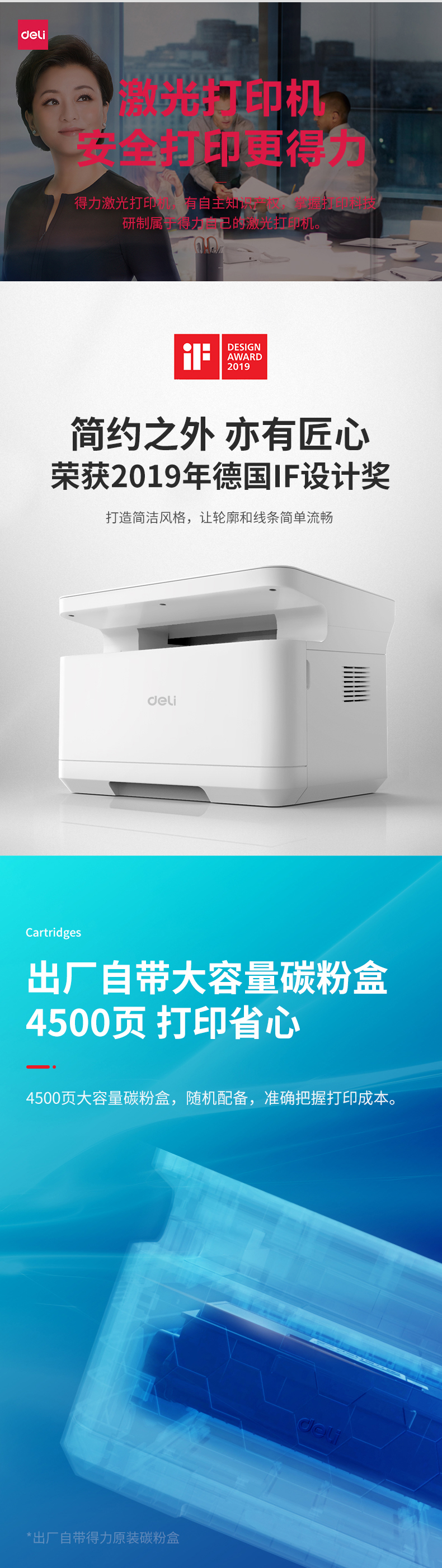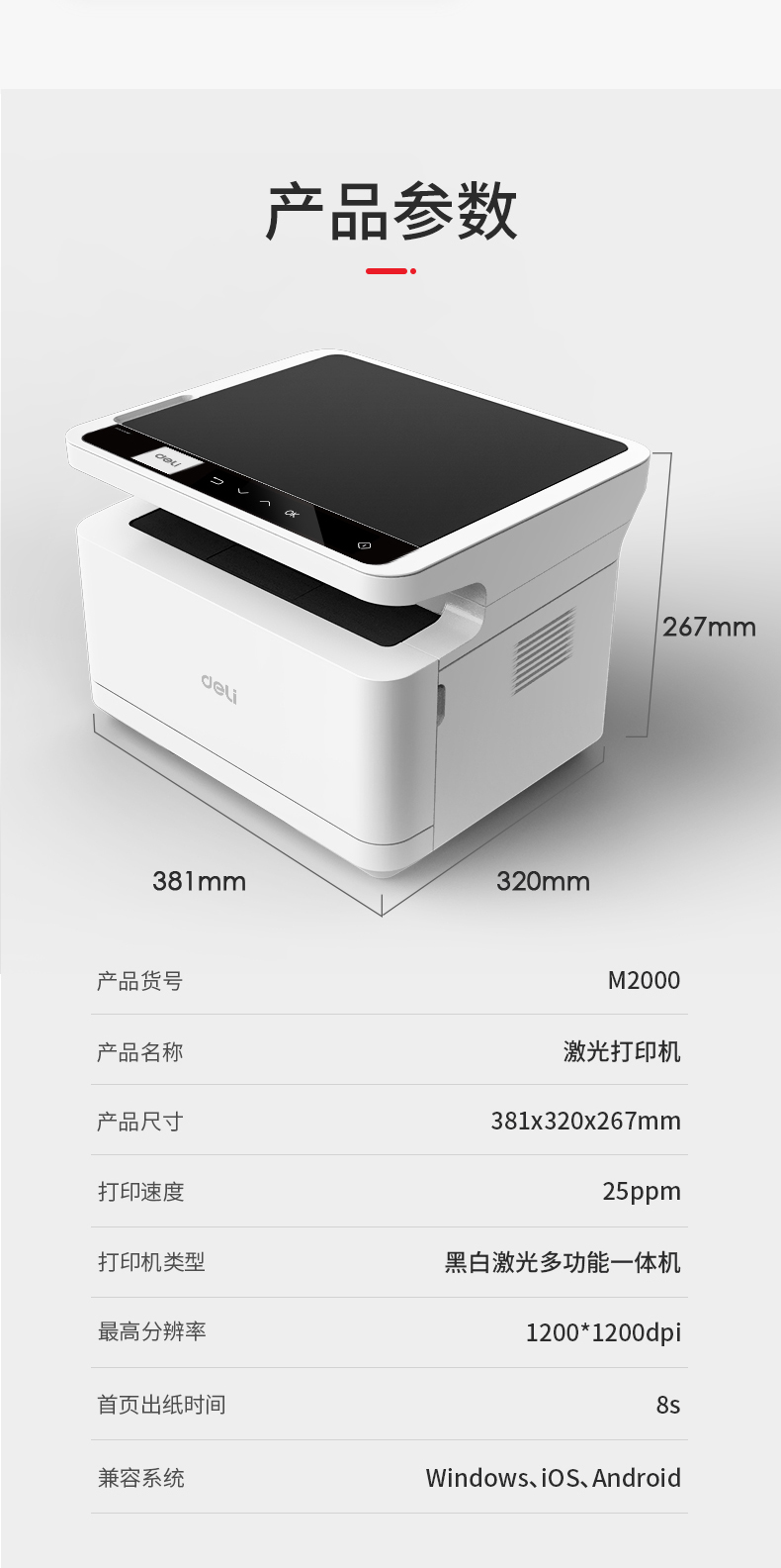 >得力M2000黑白激光打印复印扫描黑白一体机A4打印机