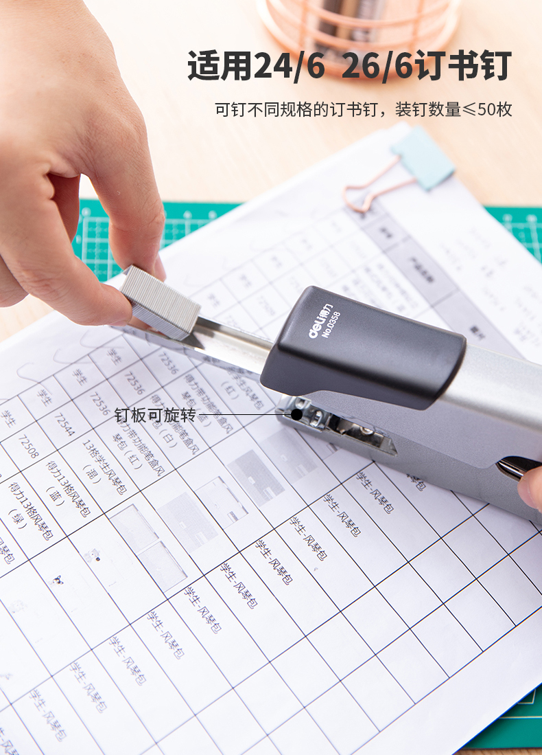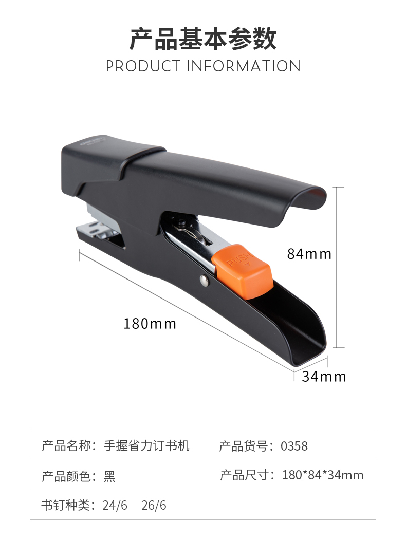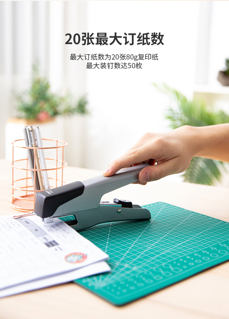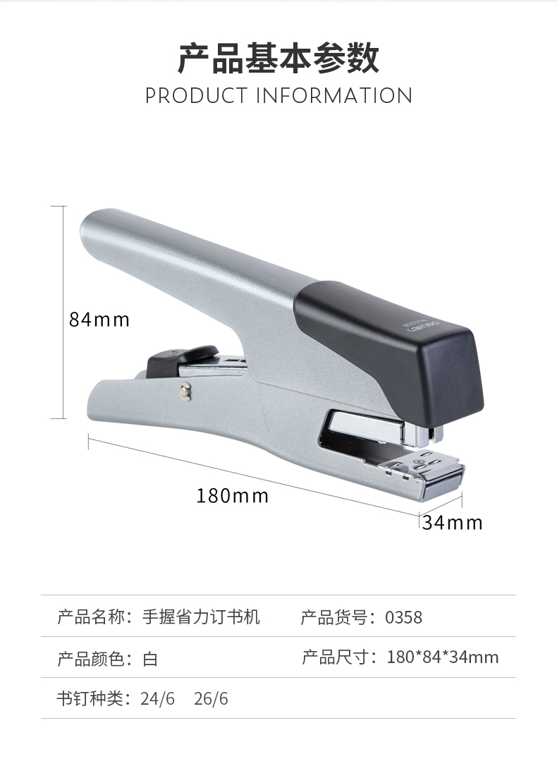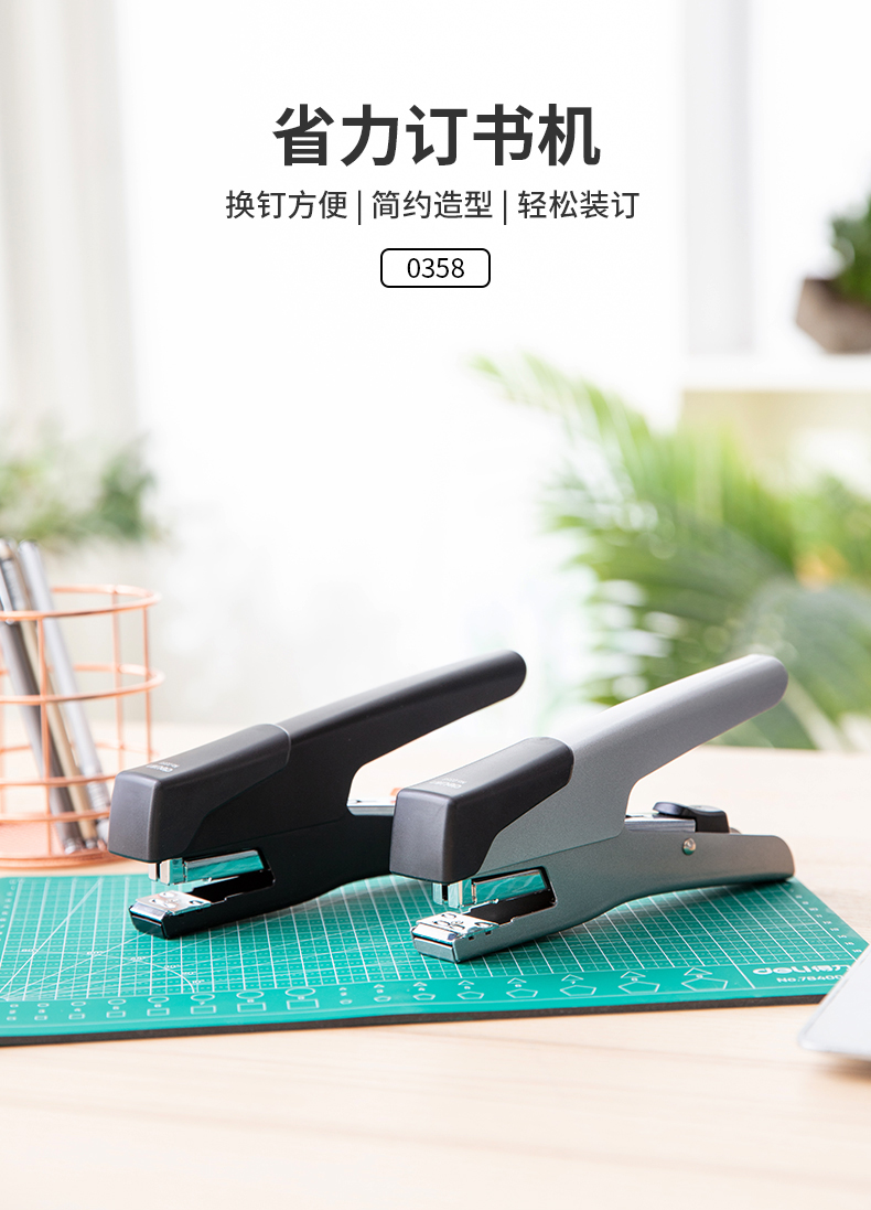 >得力0358手握式订书机金属机身黑银两色耐省力可装订20页纸