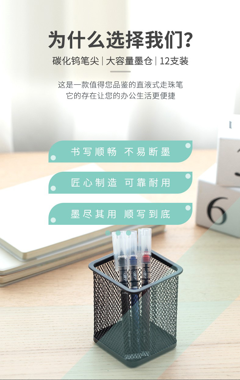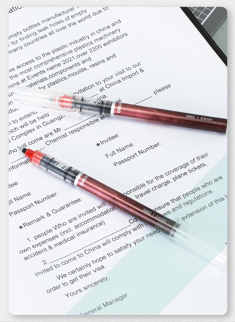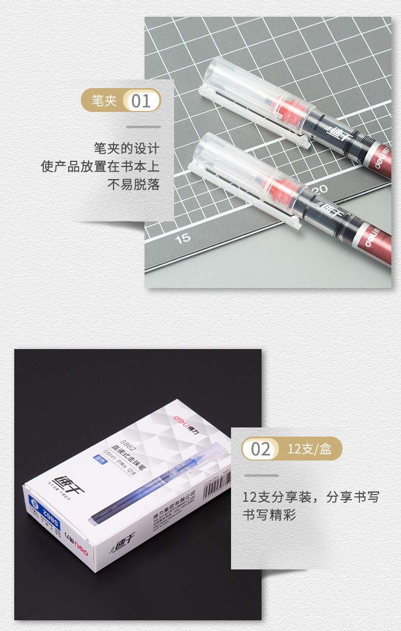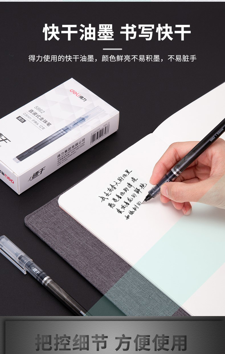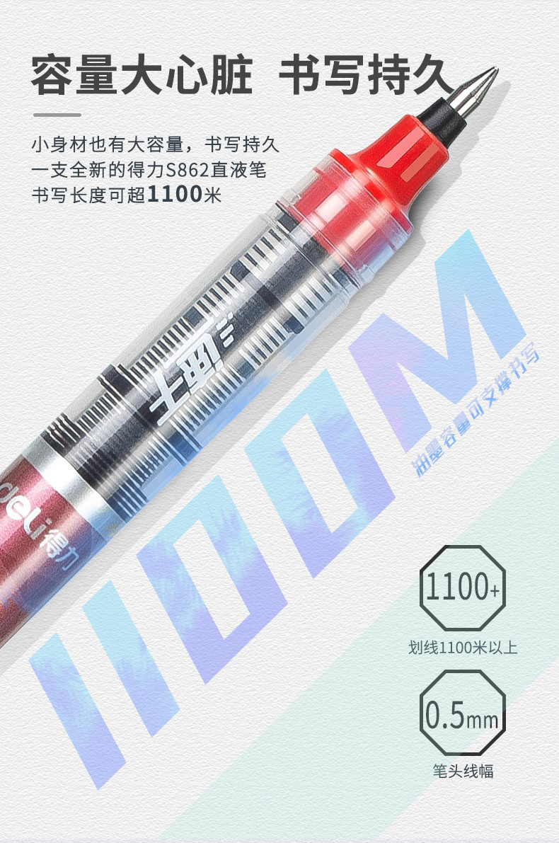 得力S862速干直液式走珠笔中性笔黑色红色蓝色0.5mm