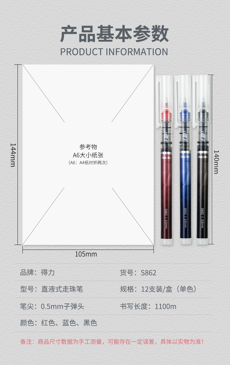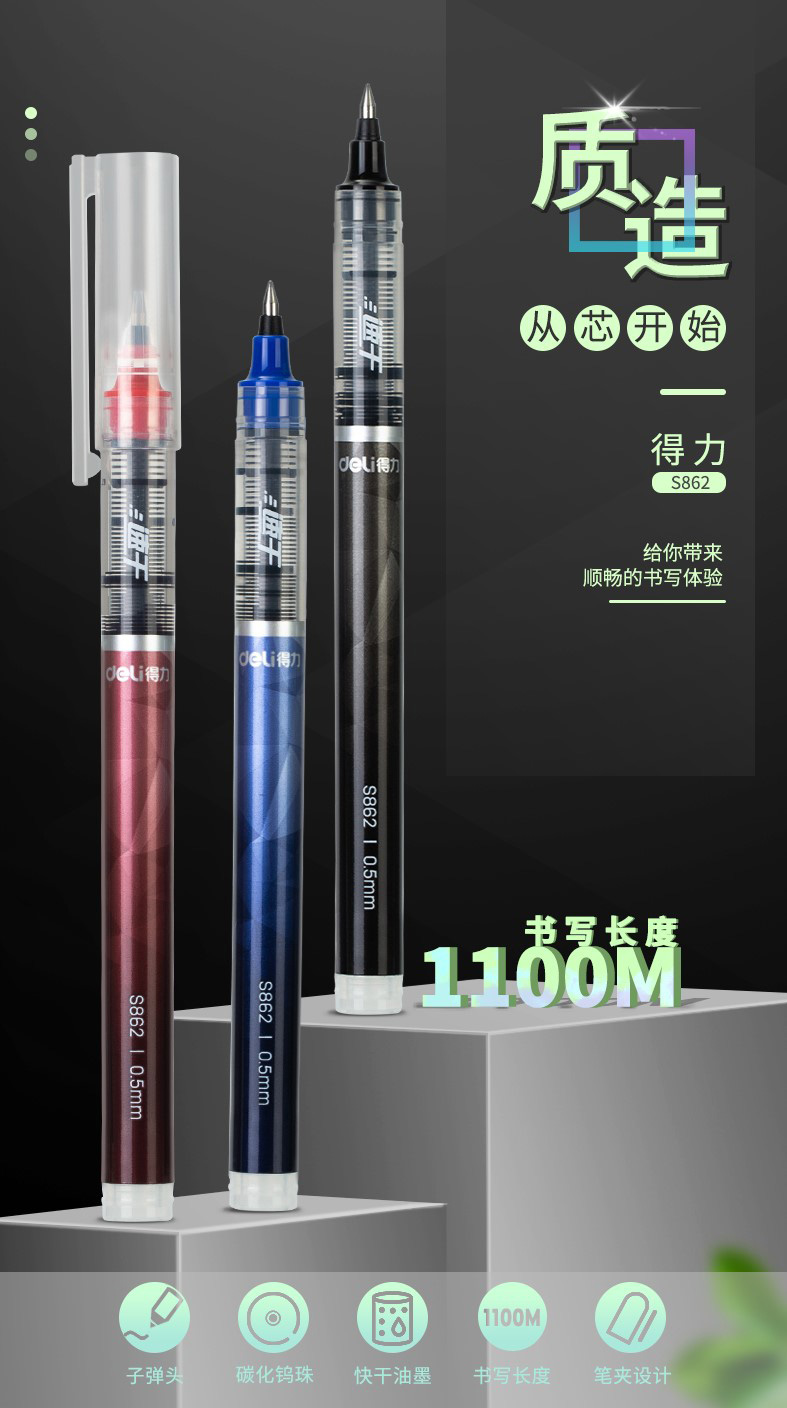 >得力S862速干直液式走珠笔中性笔黑色红色蓝色0.5mm