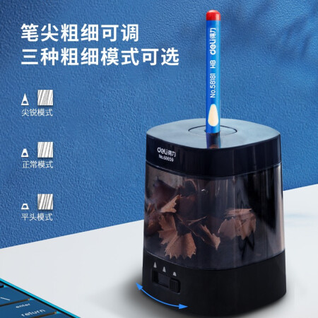 >得力电动卷笔刀 粗细可调自动削笔器 美术彩铅削笔机 68659