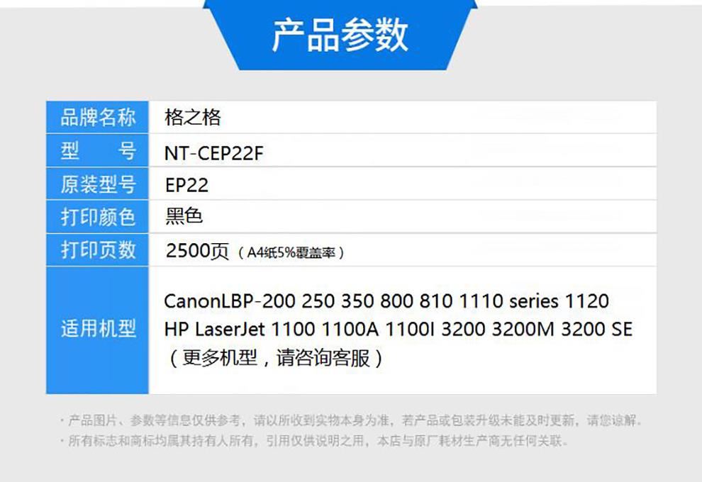 格之格EP-22硒鼓NT-CEP22F适用佳能LBP-200 250 350 800 810 1110打印机硒鼓HP1100 3200粉盒