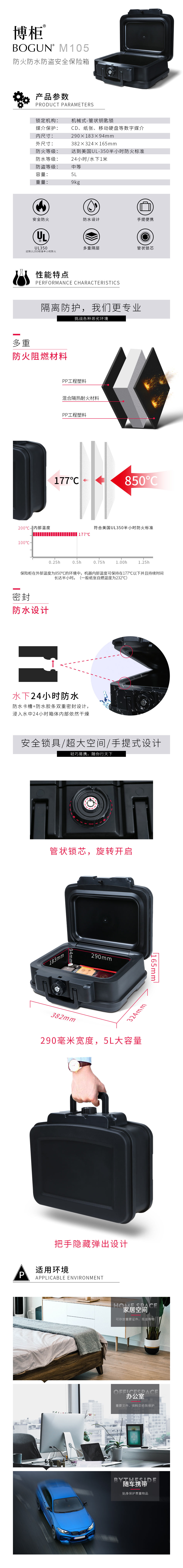 博柜(BOGUN)M105机械式管状钥匙锁30分钟防火(850℃环境)24小时防水防盗小型便携保险箱