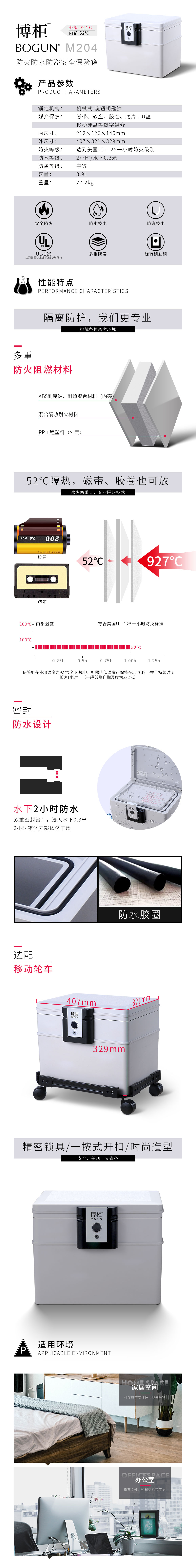 博柜(BOGUN)M204防火防水安全箱办公家用保护磁带胶卷底片1小时防火预热易损物品