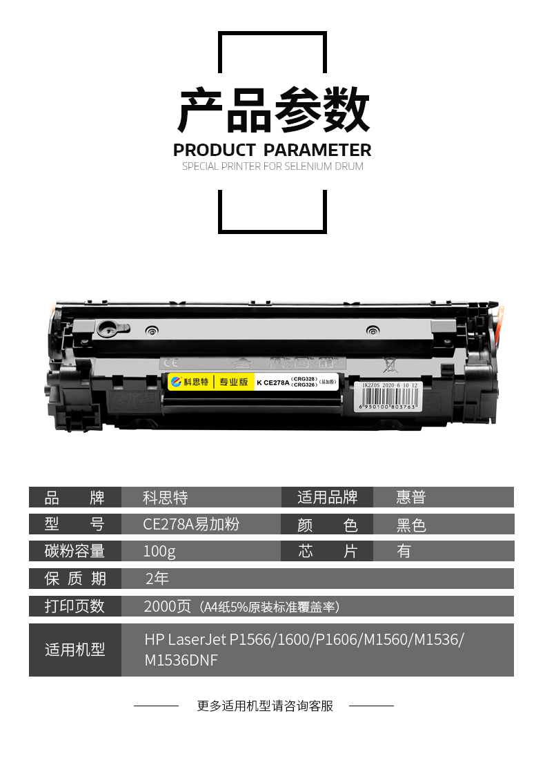 科思特CE278A硒鼓 适用惠普P1566 P1600 M1560 佳能CRG328 CRG326 专业版