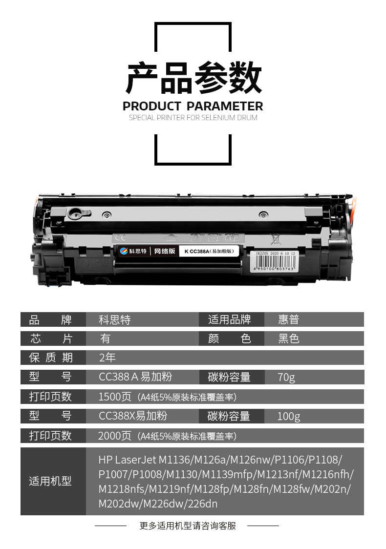 科思特 CC388A易加粉 适用 HP P1007 M1136 M1213nf M128fn M128fw M226dw M226dn M202n/dw 专业版